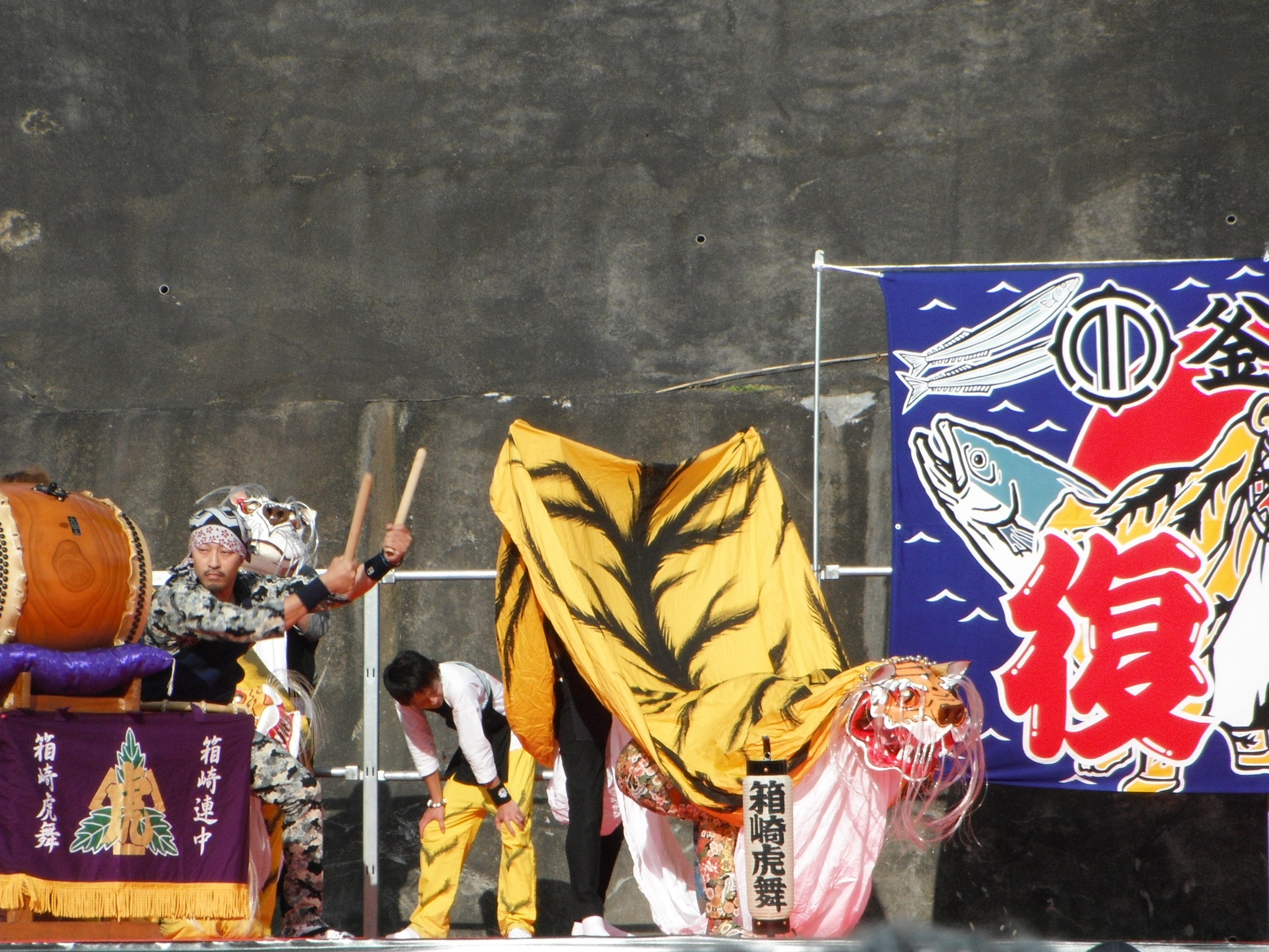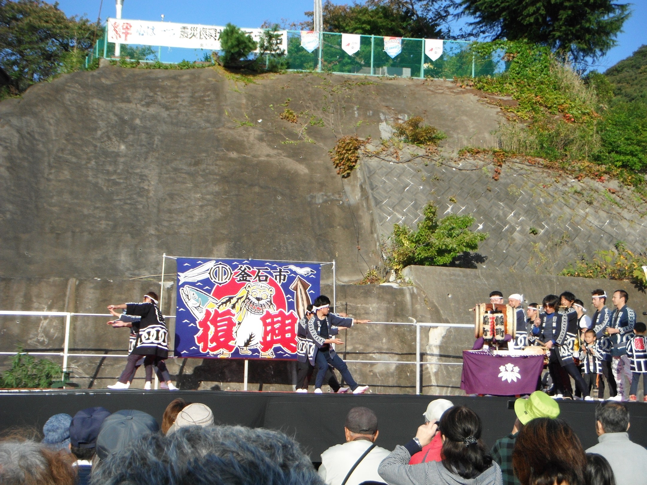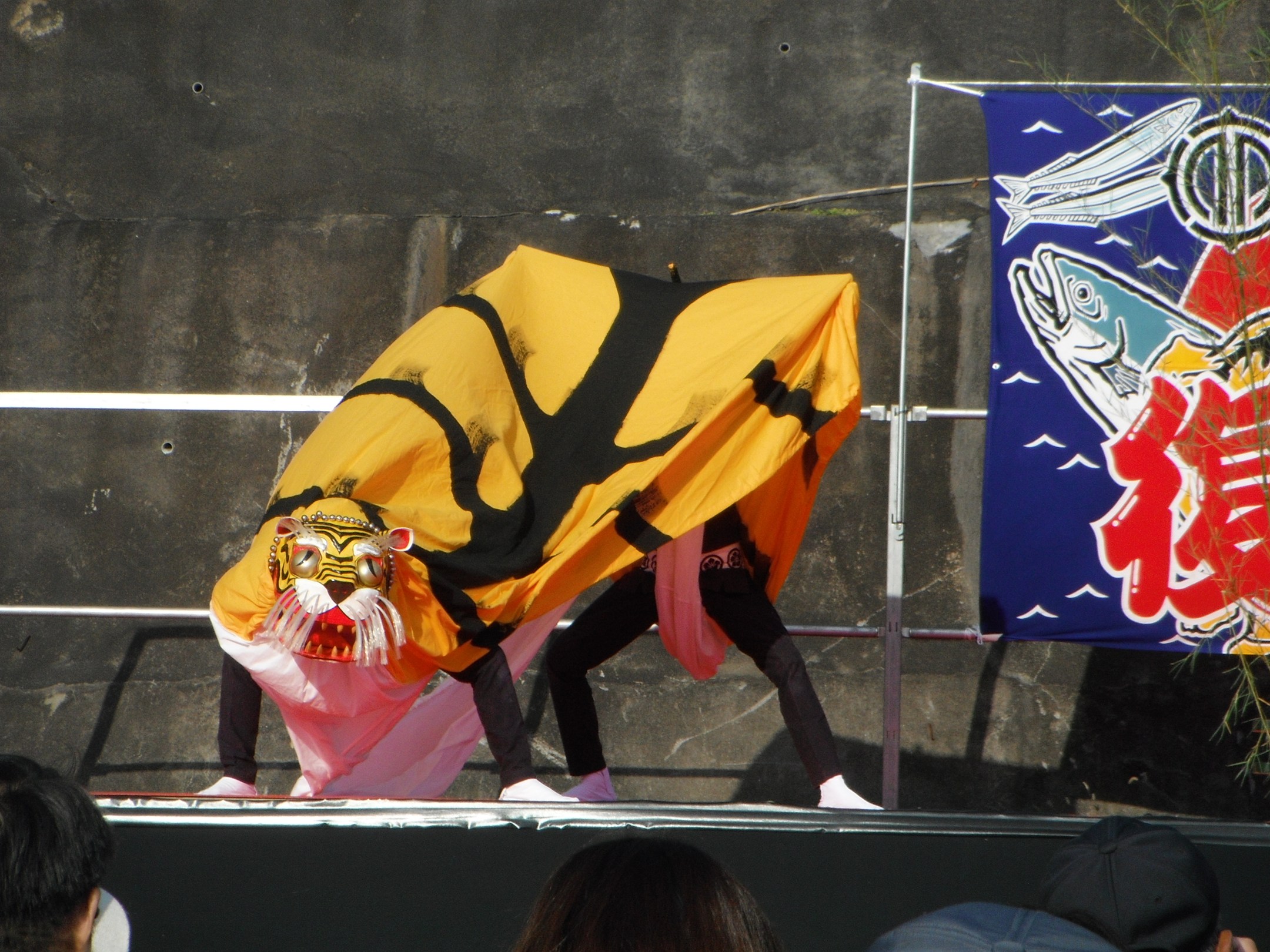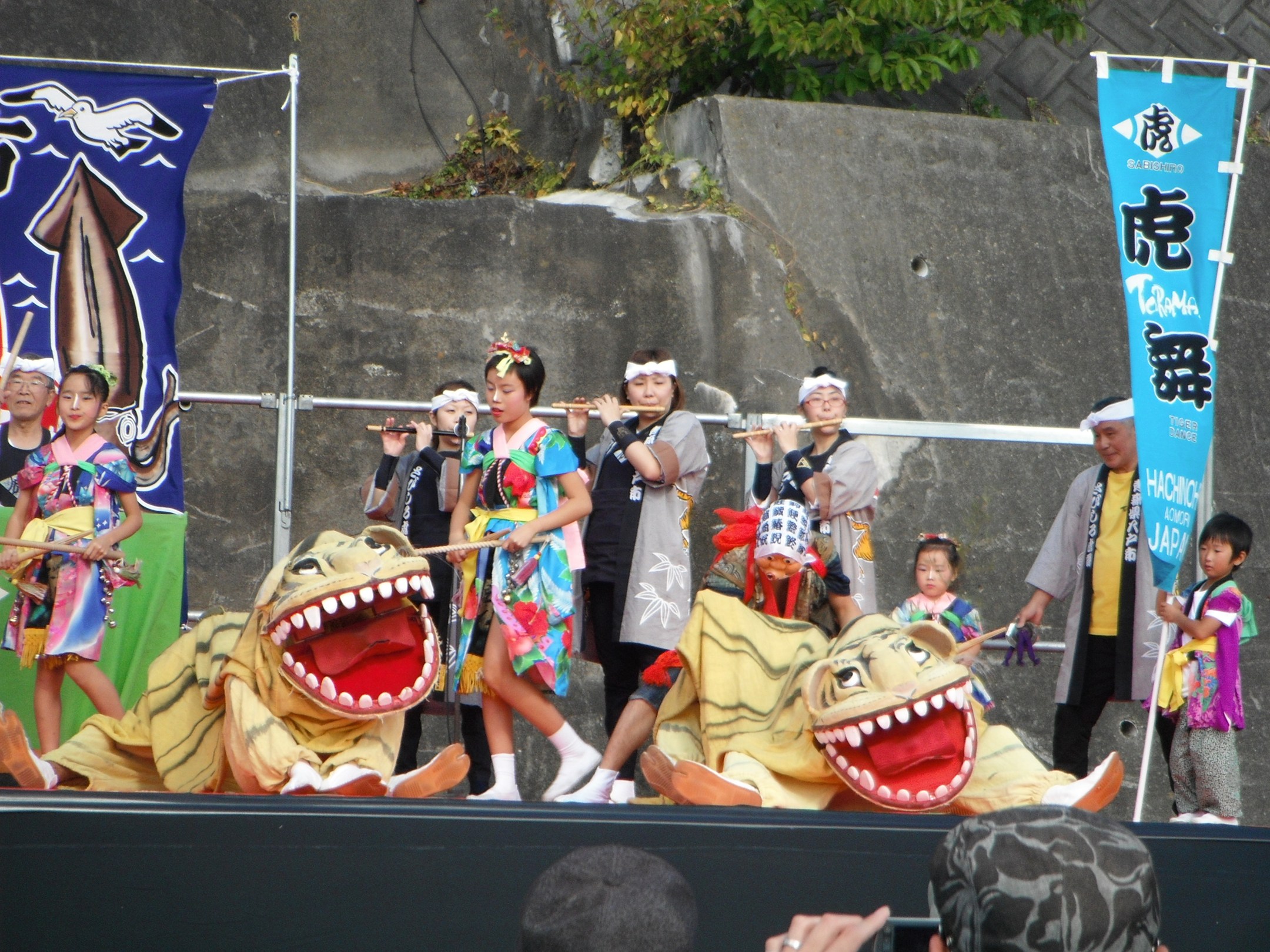 東前バス駐車場特設会場で神楽や虎舞など踊りを披露しました。
