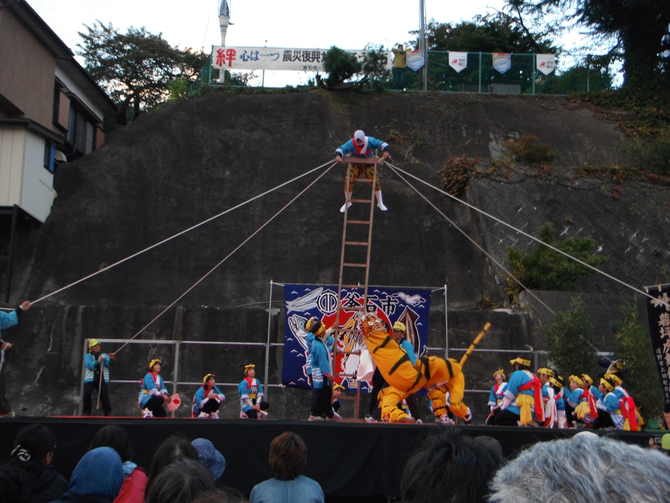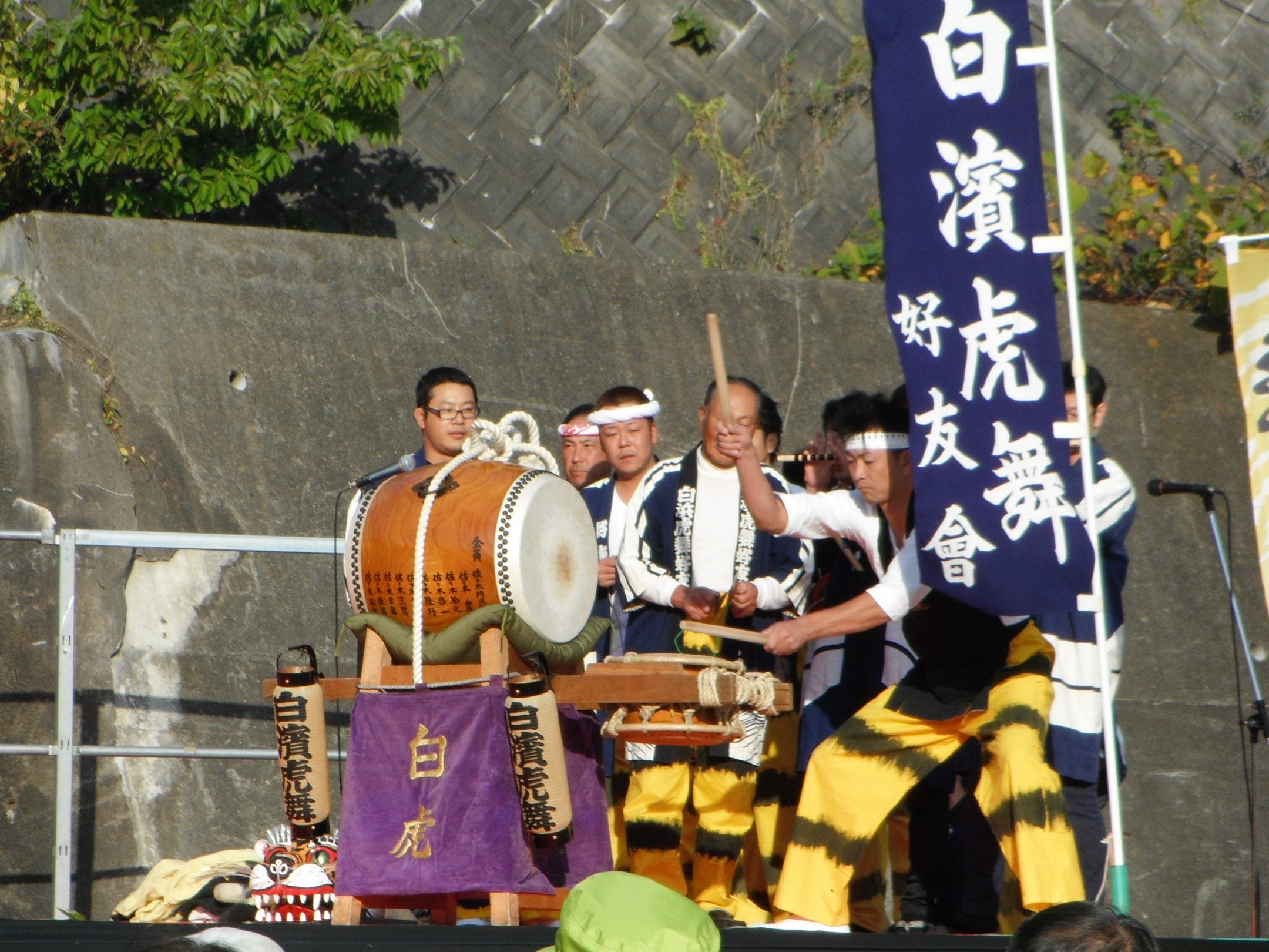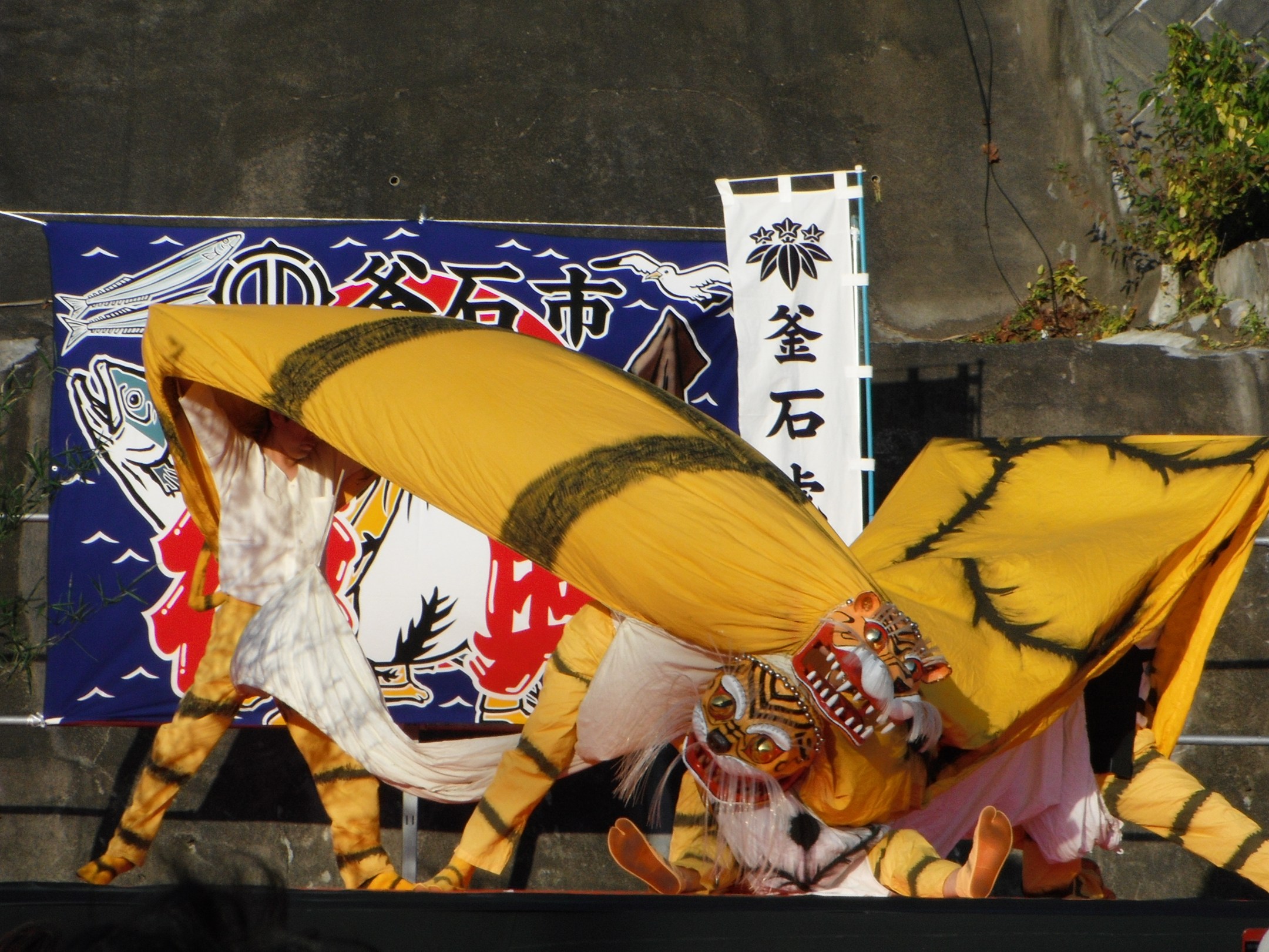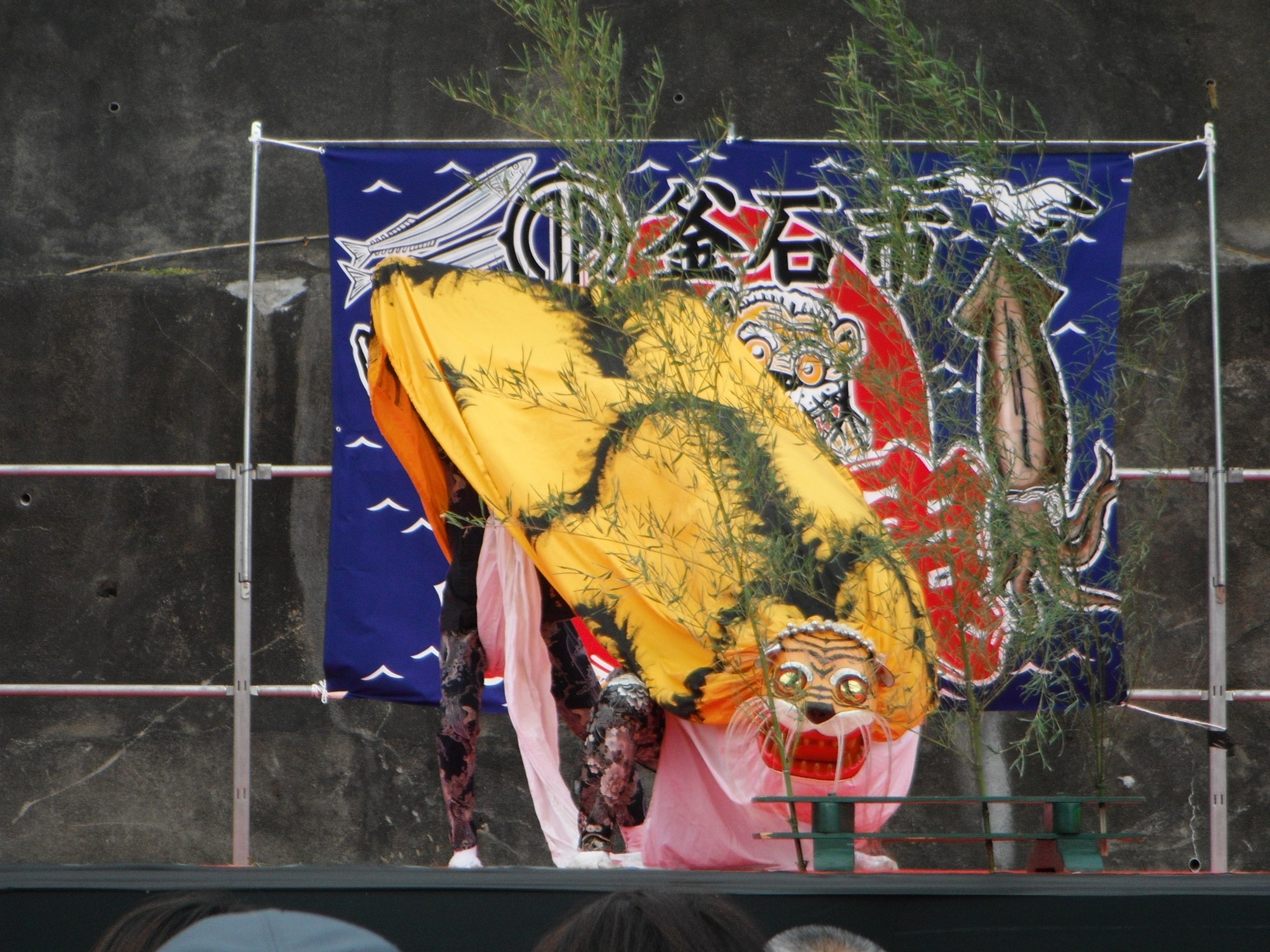 東前バス駐車場特設会場で神楽や虎舞など踊りを披露しました。