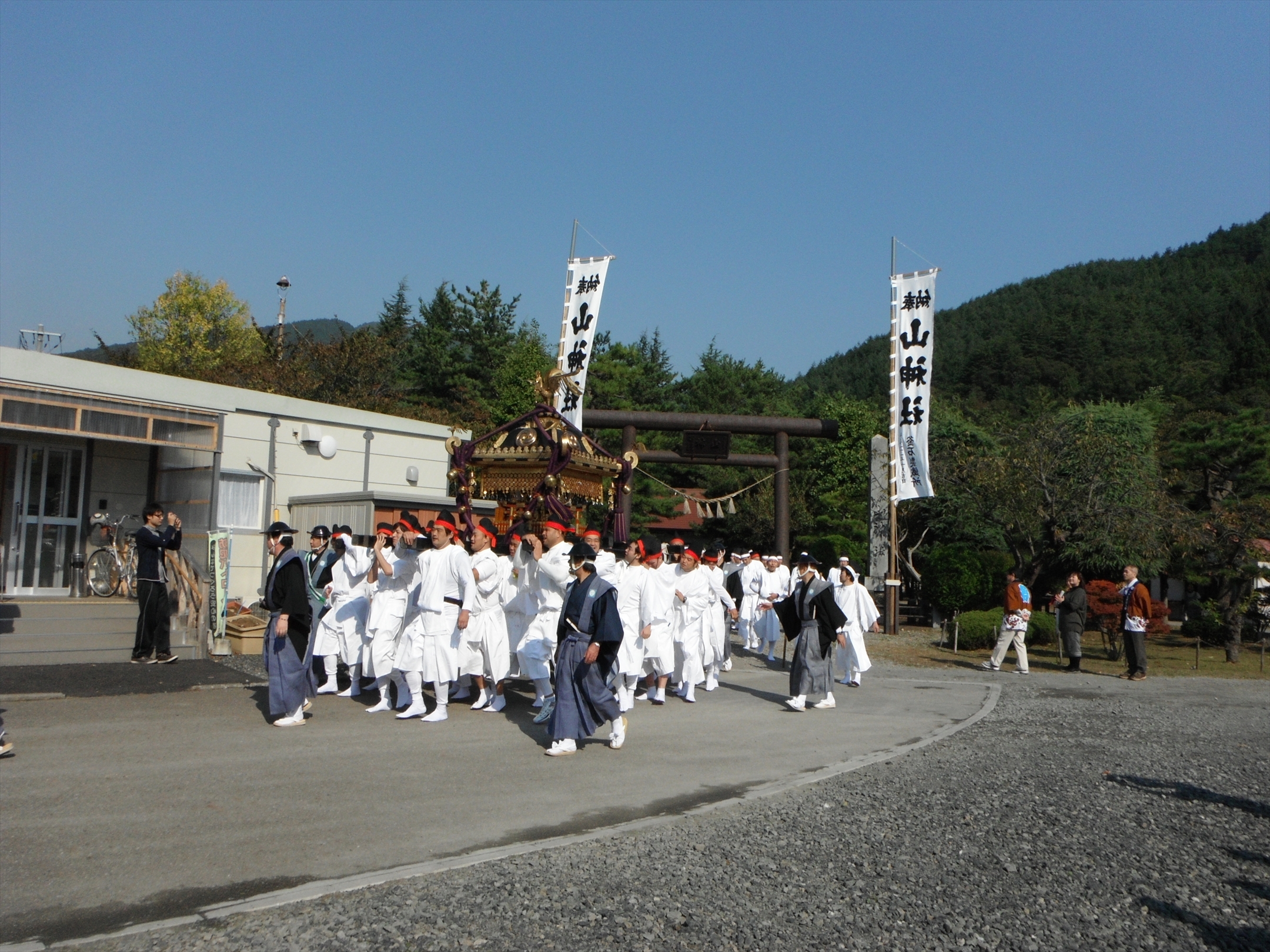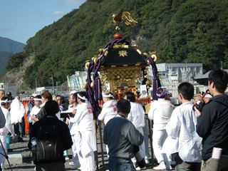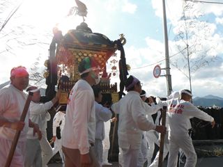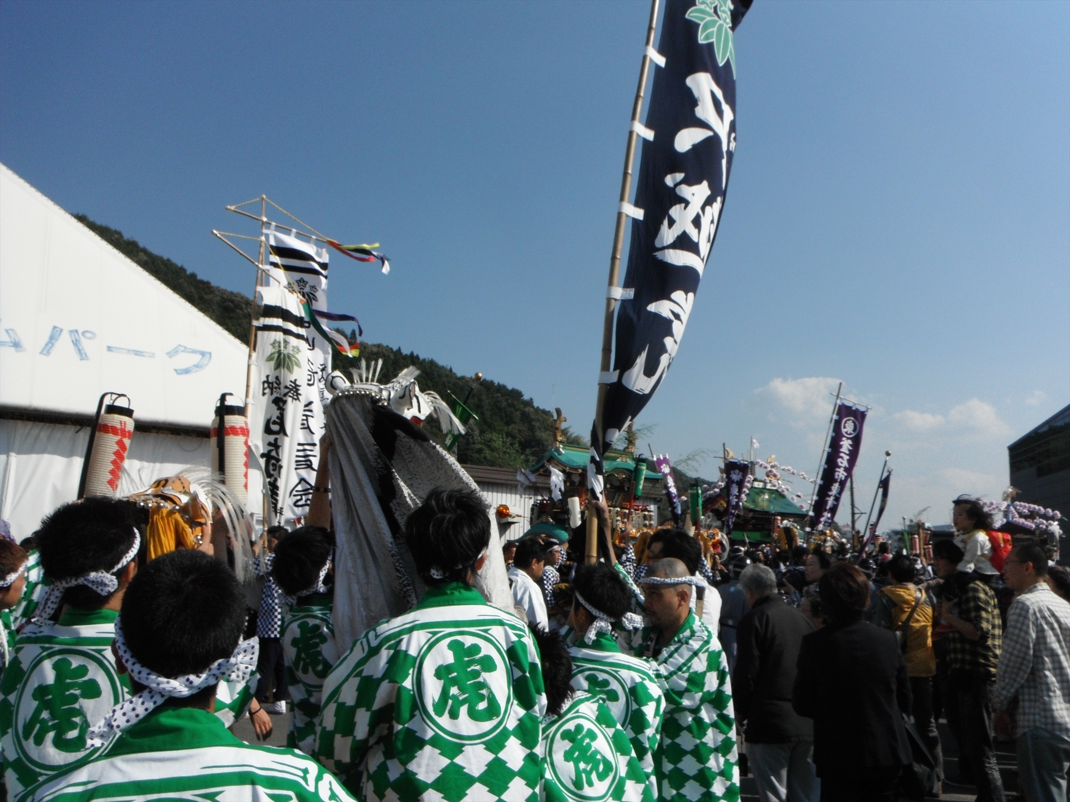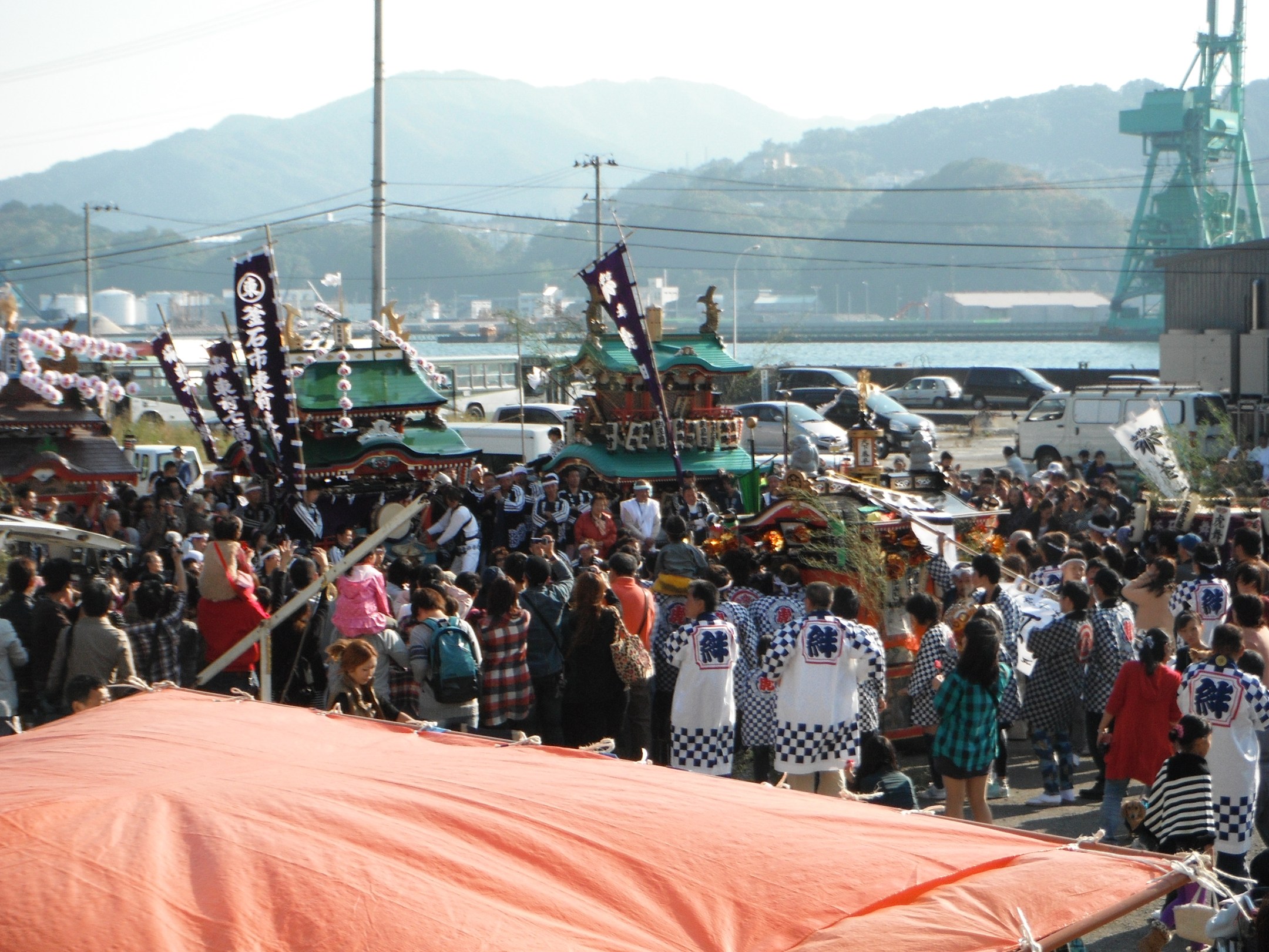 尾崎神社、山神社の両御輿がシープラザ遊に到着しました。