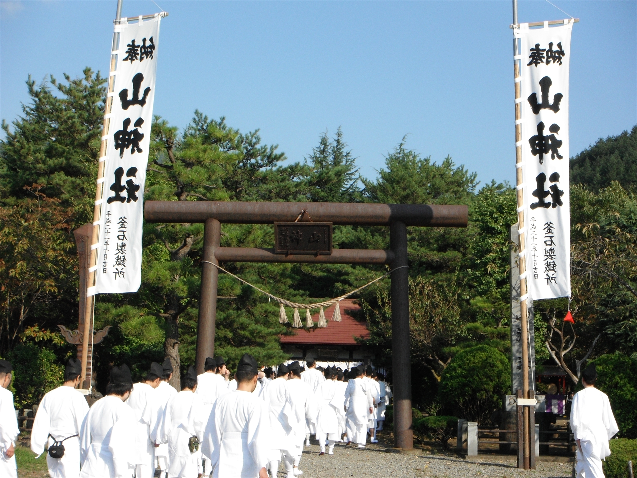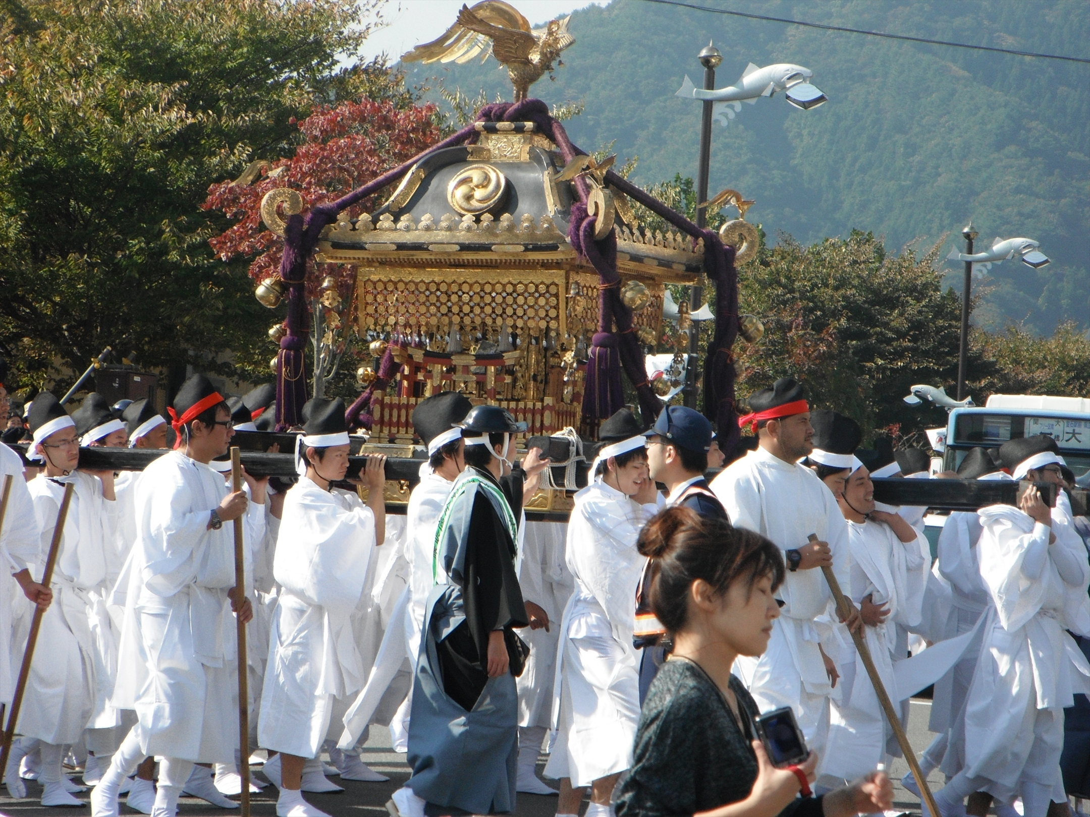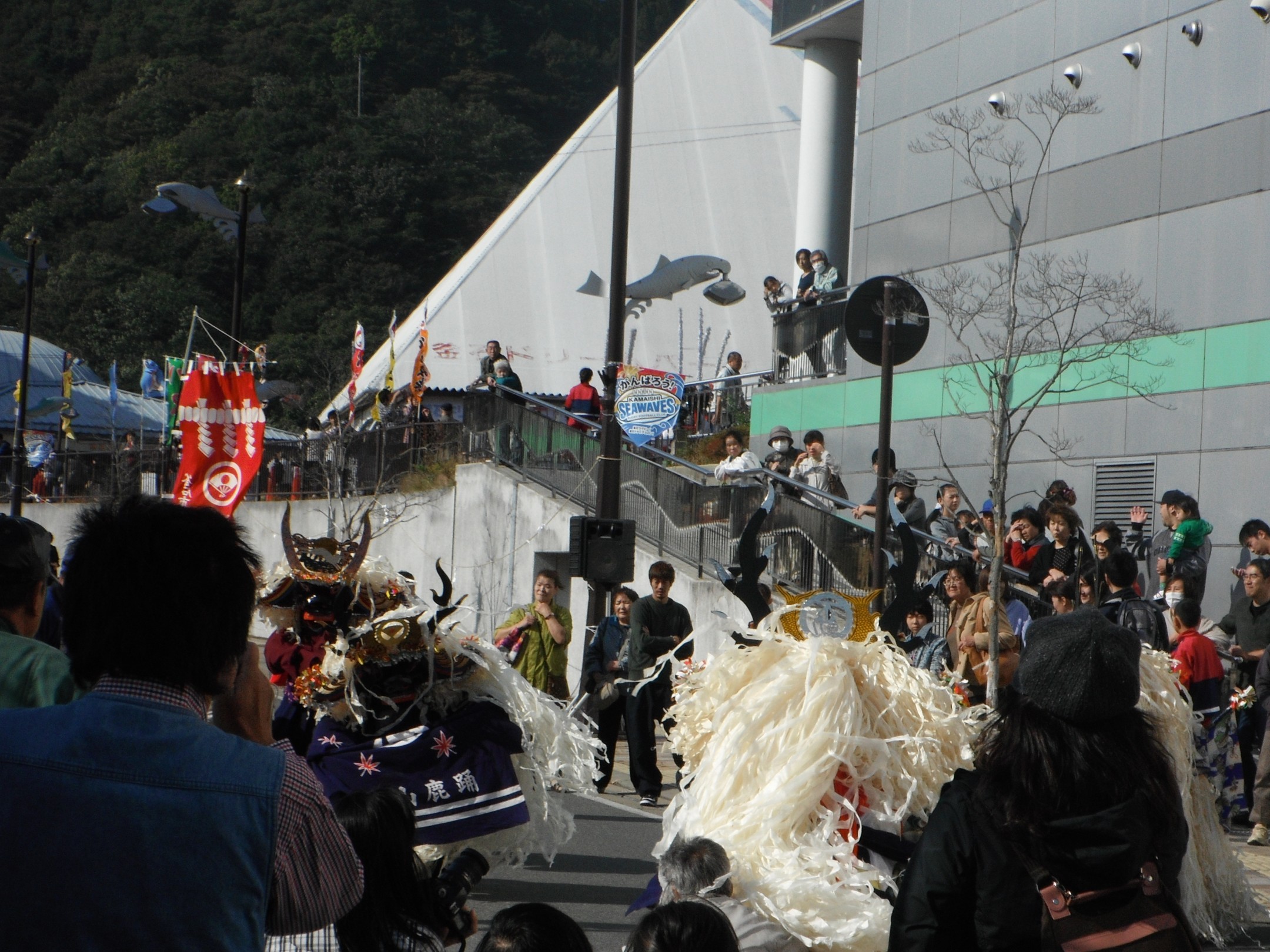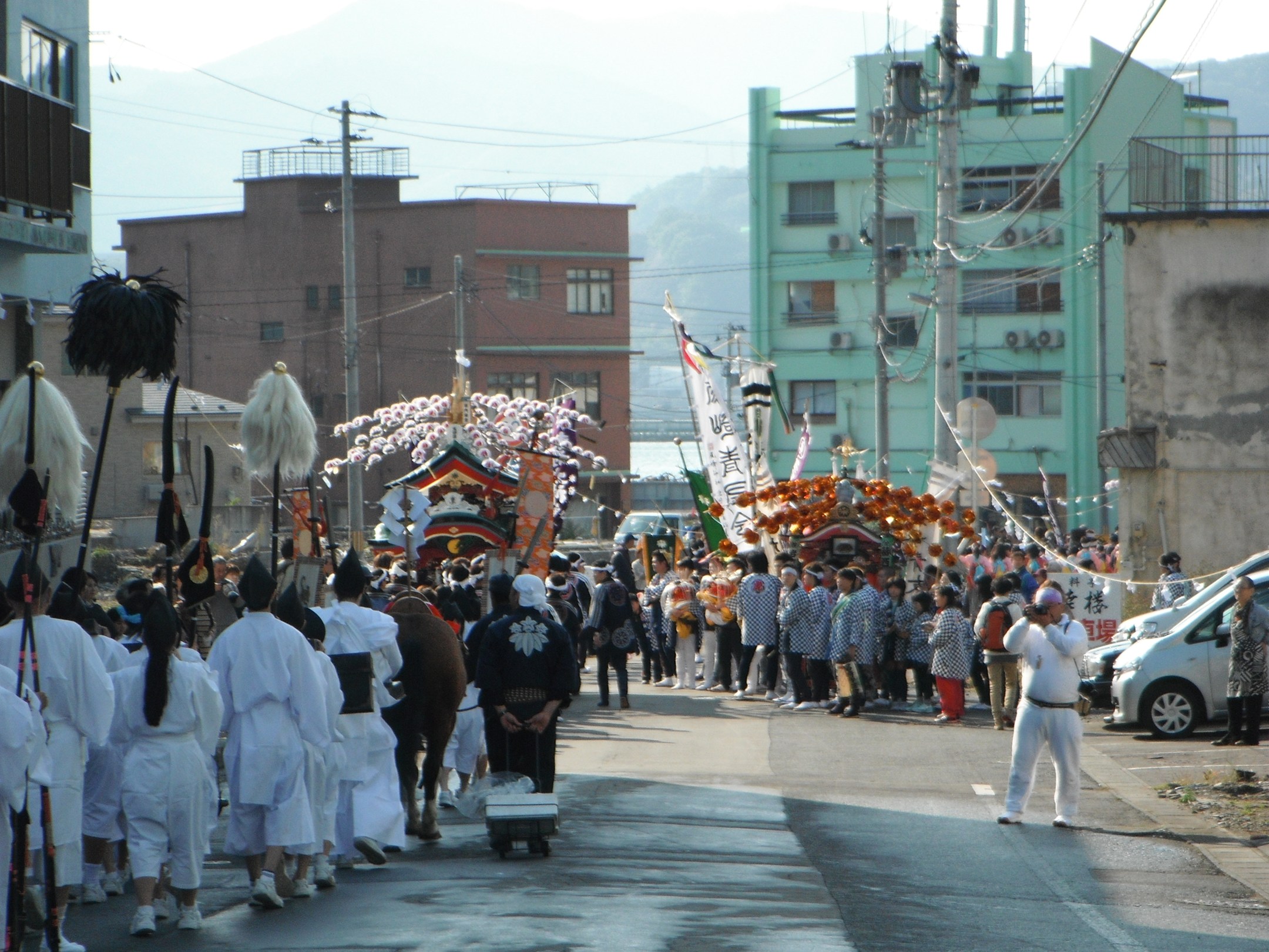 尾崎神社、山神社の両御輿がシープラザ遊に到着しました。