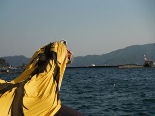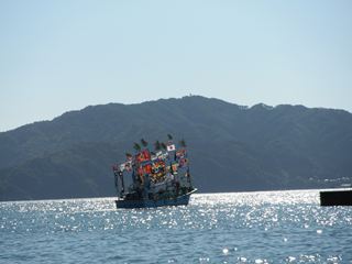 14時30分過ぎには、第2魚市場より、尾崎神社のお神輿が再び海を渡り帰って行きました。