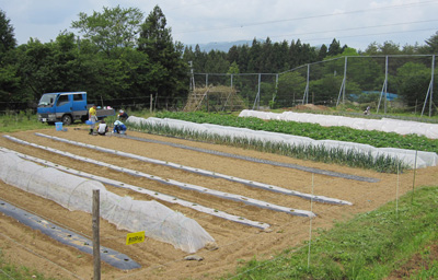 周辺には、畑(写真)や仮設のグループホームがあります。
