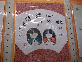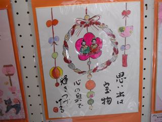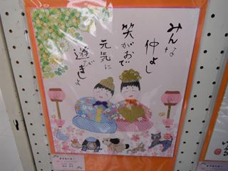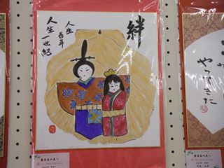 北九州市の書道団体「紫鳳会」の皆さんから釜石へ、おひなさまの絵手紙137枚が送られてきました。
