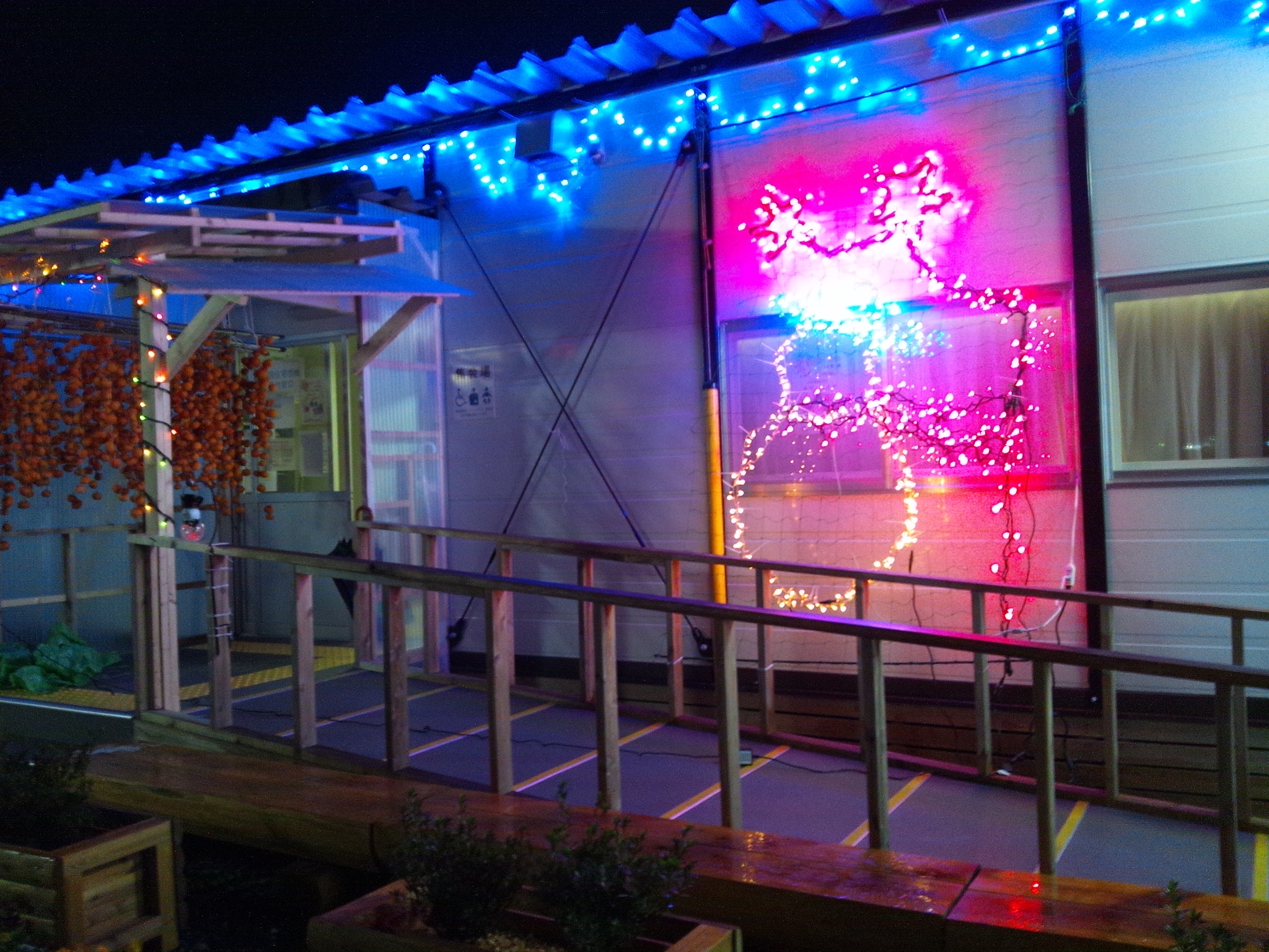 13日に、大船渡一中仮設団地の集会所にイルミネーション取り付けしてきました。