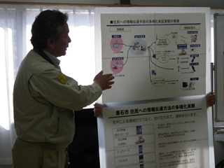 釜石市による住民への災害情報伝達手段の多様化実証実験が平田仮設団地談話室で行われました。