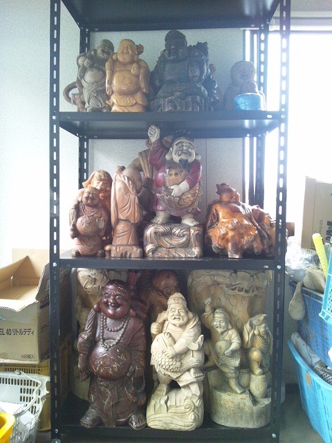 倉庫内に早速設置し、木彫りの大黒様・恵比寿様の棚に。