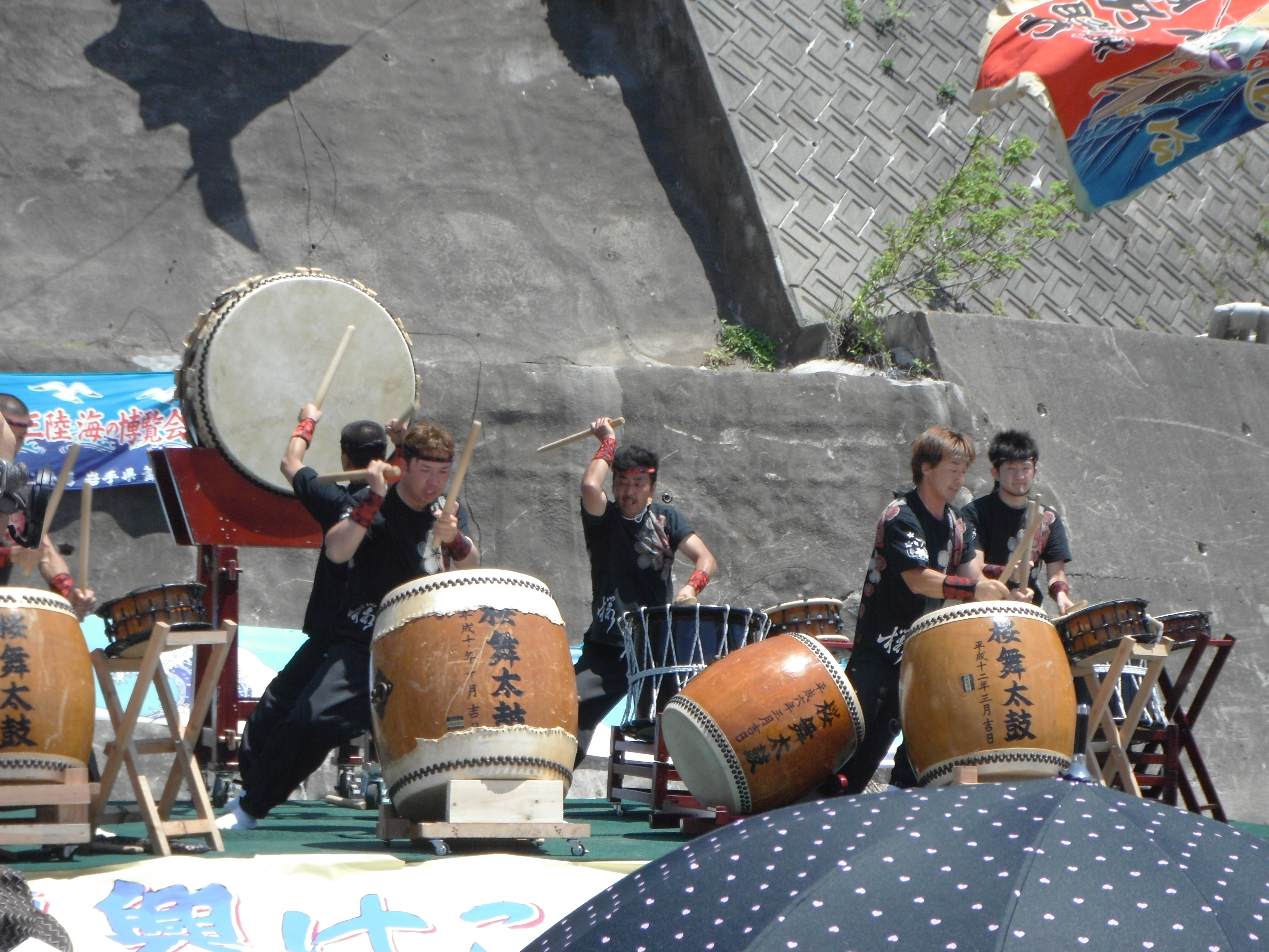 鼓舞桜会による太鼓の演奏震災で亡くなった仲間のためにも「彼の無念や志を引き継ぎ天まで響かせる」