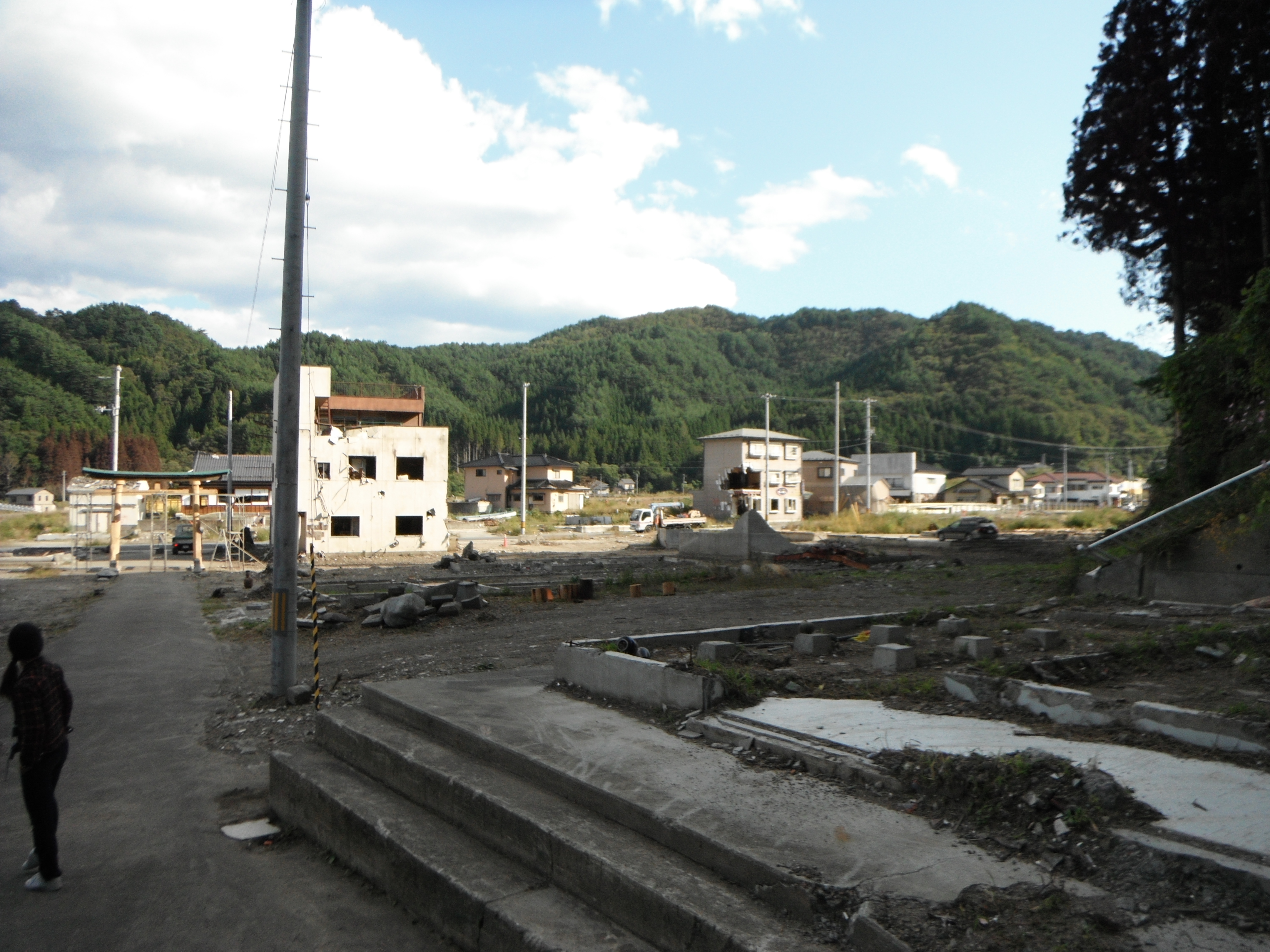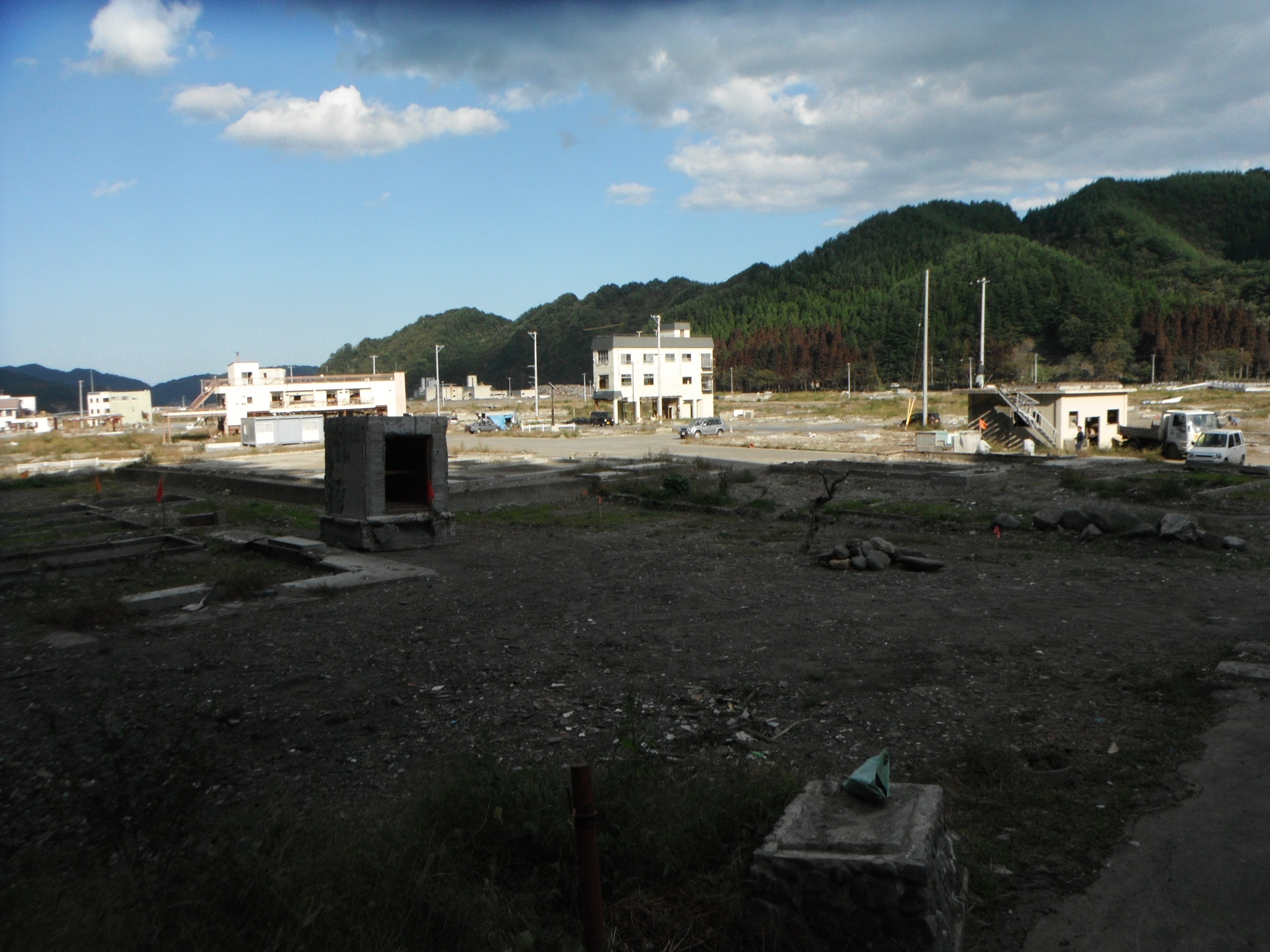 周辺に以前のような瓦礫はなくなりましたが、なんだかだだっ広い空き地のような感じになっています