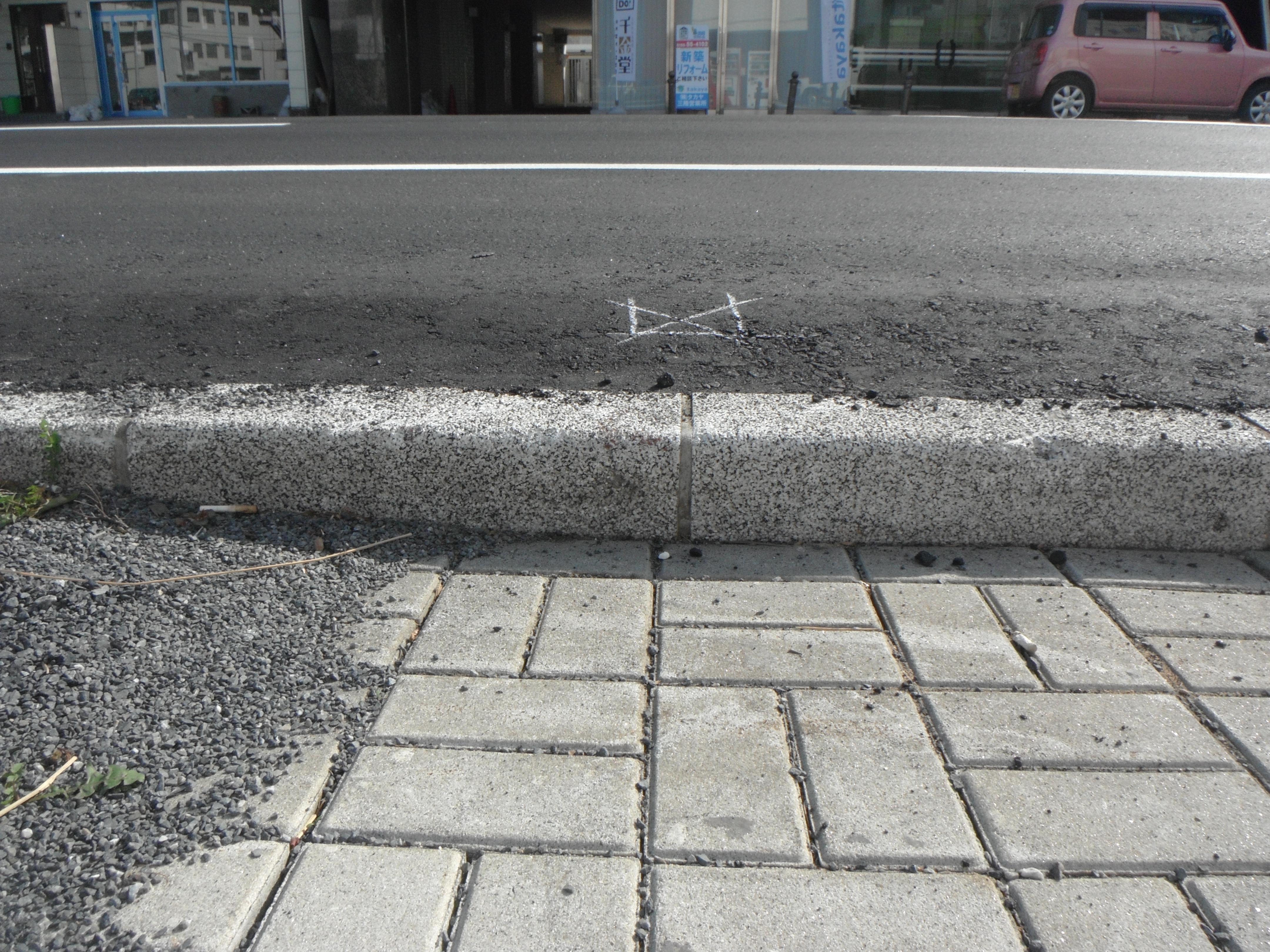 大町ベルシティローソン前交差点 歩道に標識。誘導する警察官
