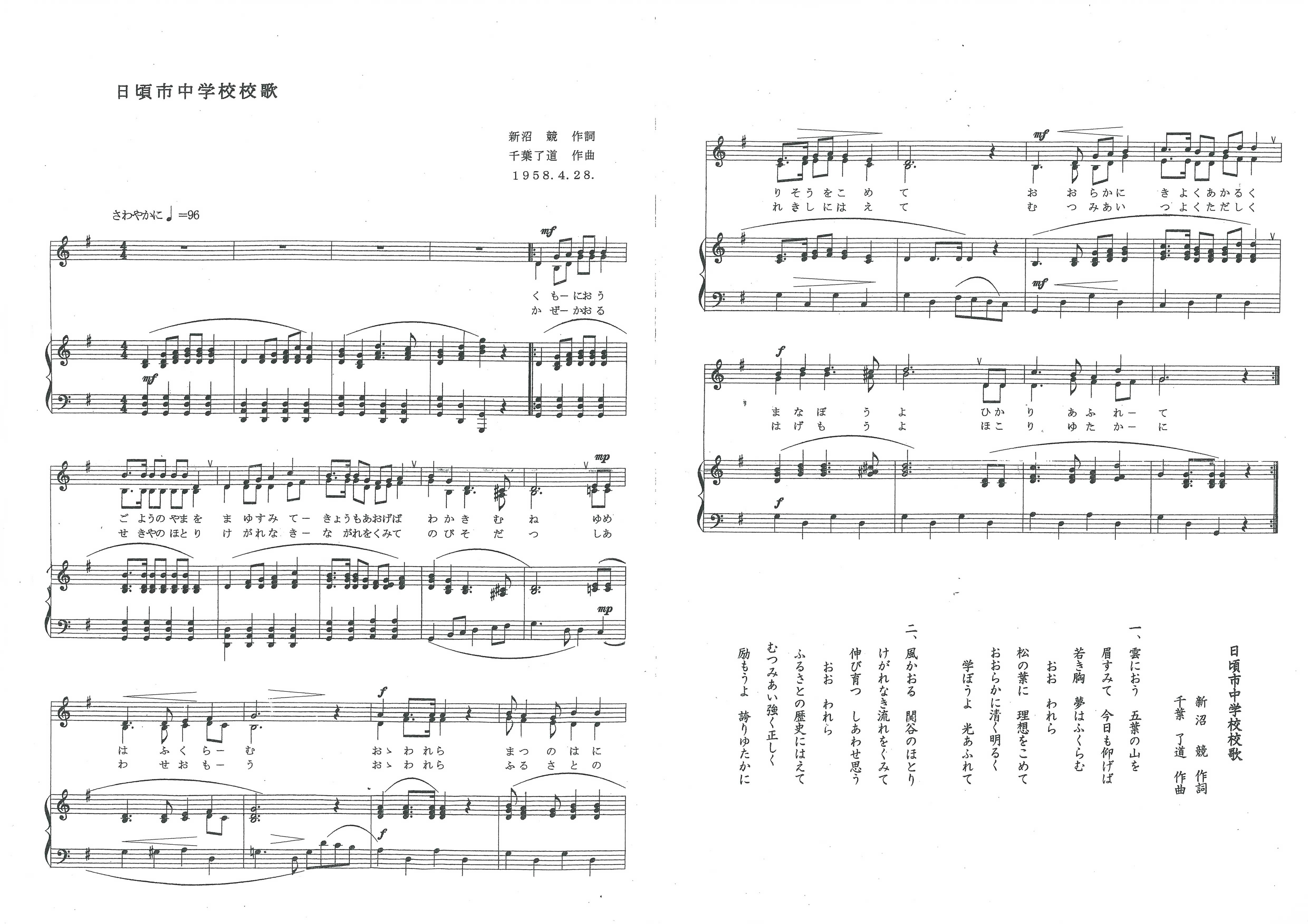 http://www.youtube.com/watch?v=PPtVVWp5ZSY大船渡市立日頃市中学校校歌 ピアノ伴奏 LONG ver