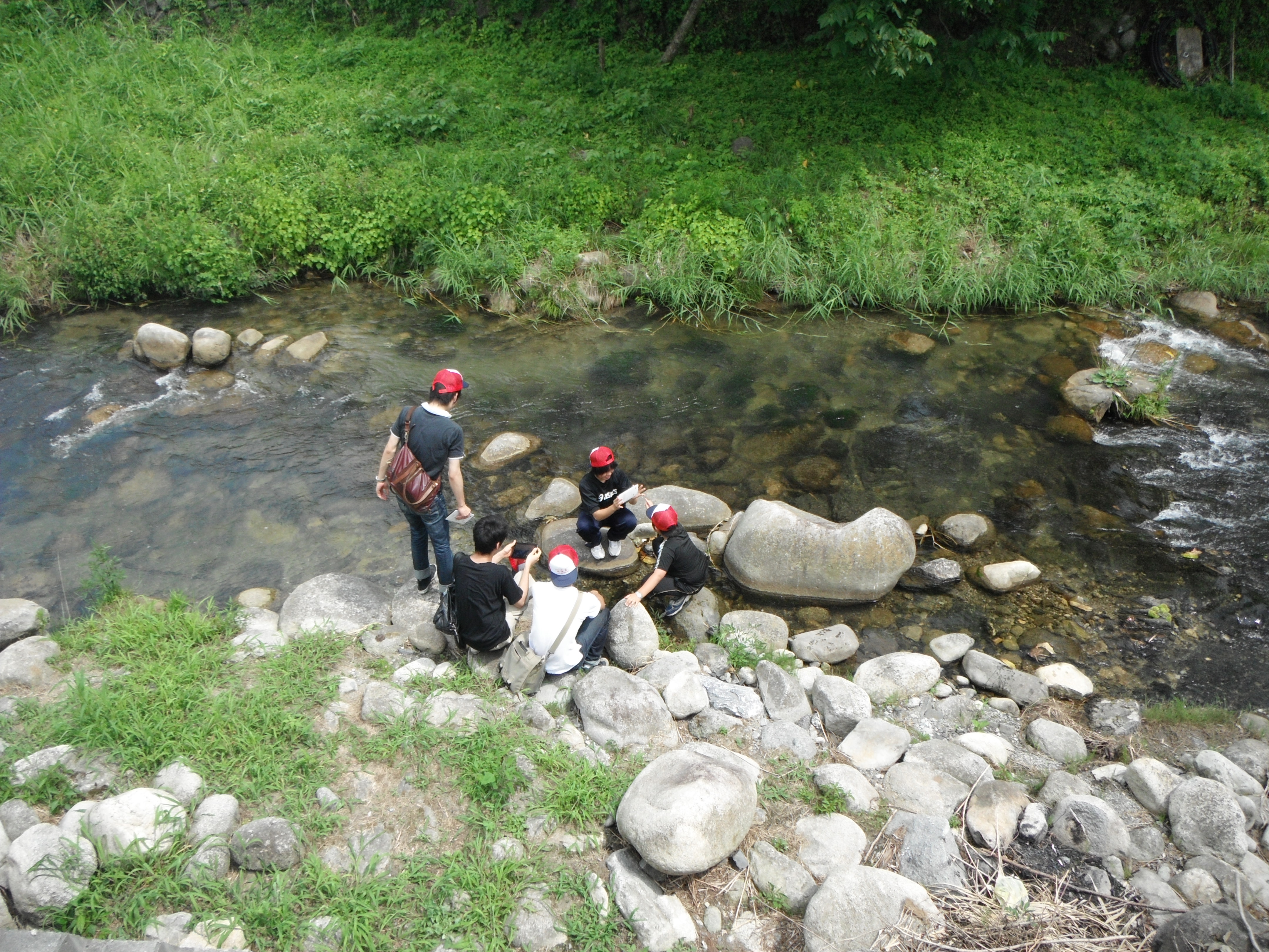 ここでは中学生が作ってきたペットボトルの仕掛けを仕掛けて、何らかの生物が捕まることを期待しつつ次へ移動します。