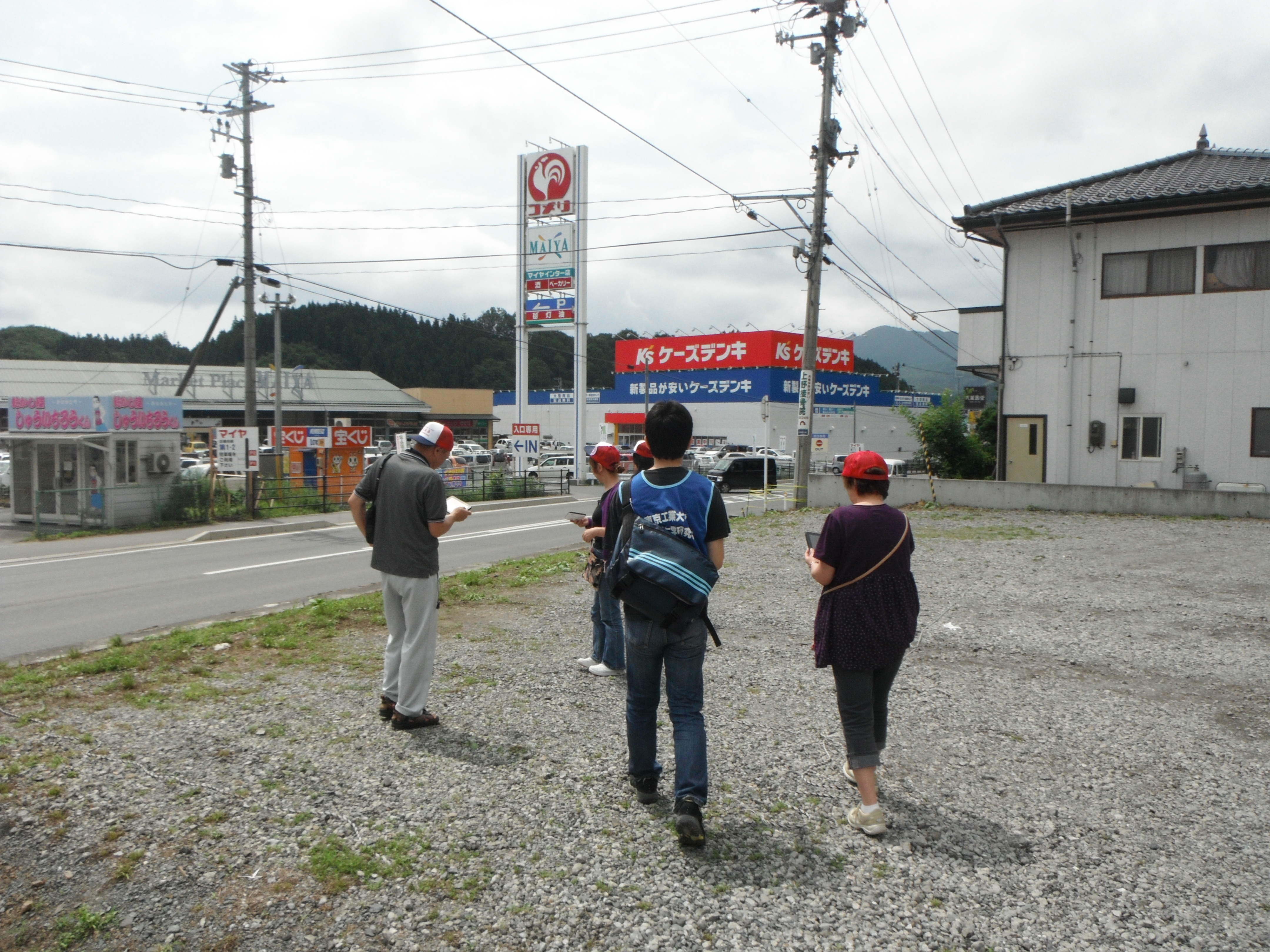 私は昨日に引き続き「チームひまわり」グループに同行させていただき、まずは営業しているスーパー、ホームセンター、家電量販店の様子を撮影しに行きました。