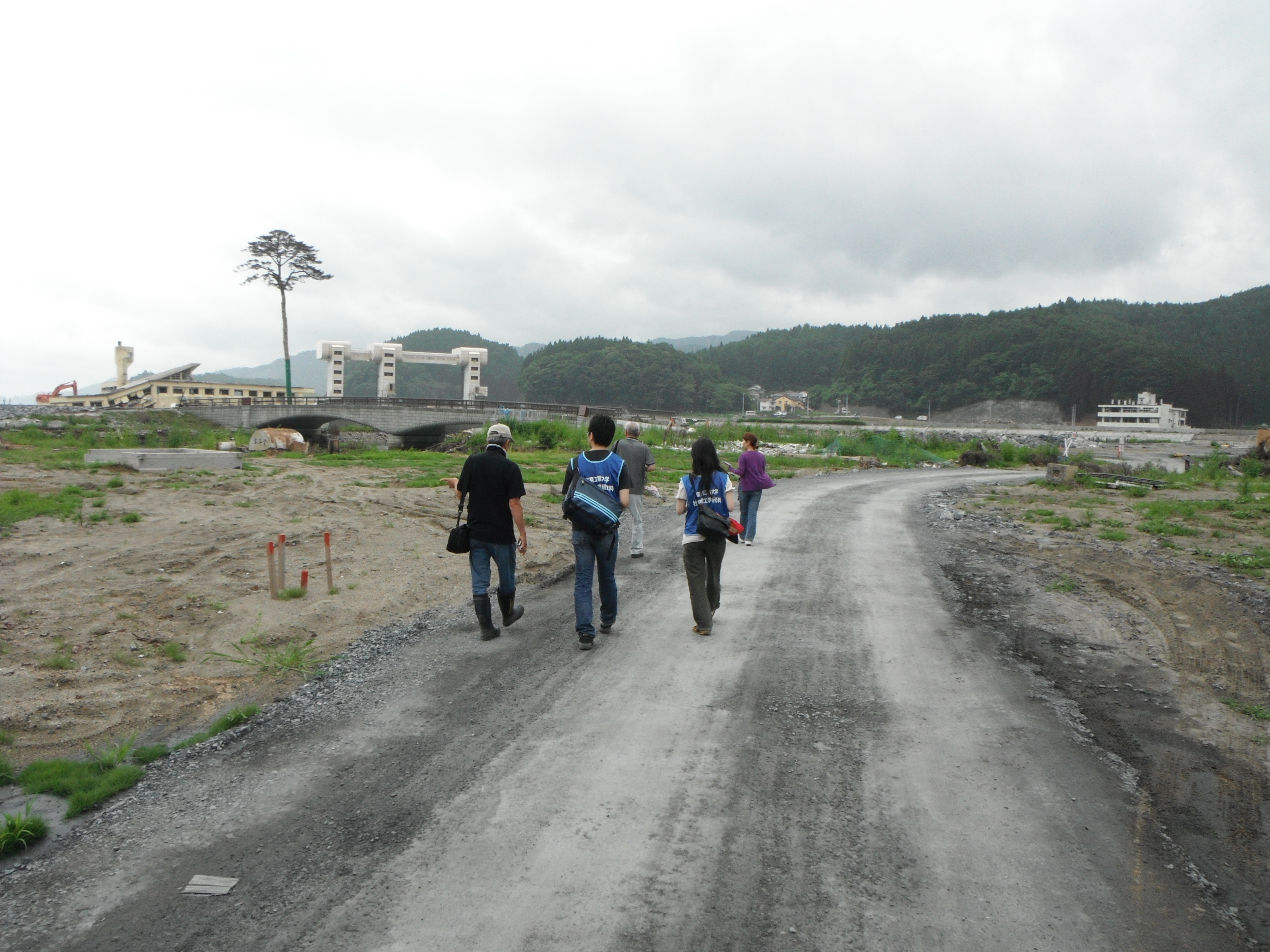 一本松へ向かう道をみんなで歩いているところです。