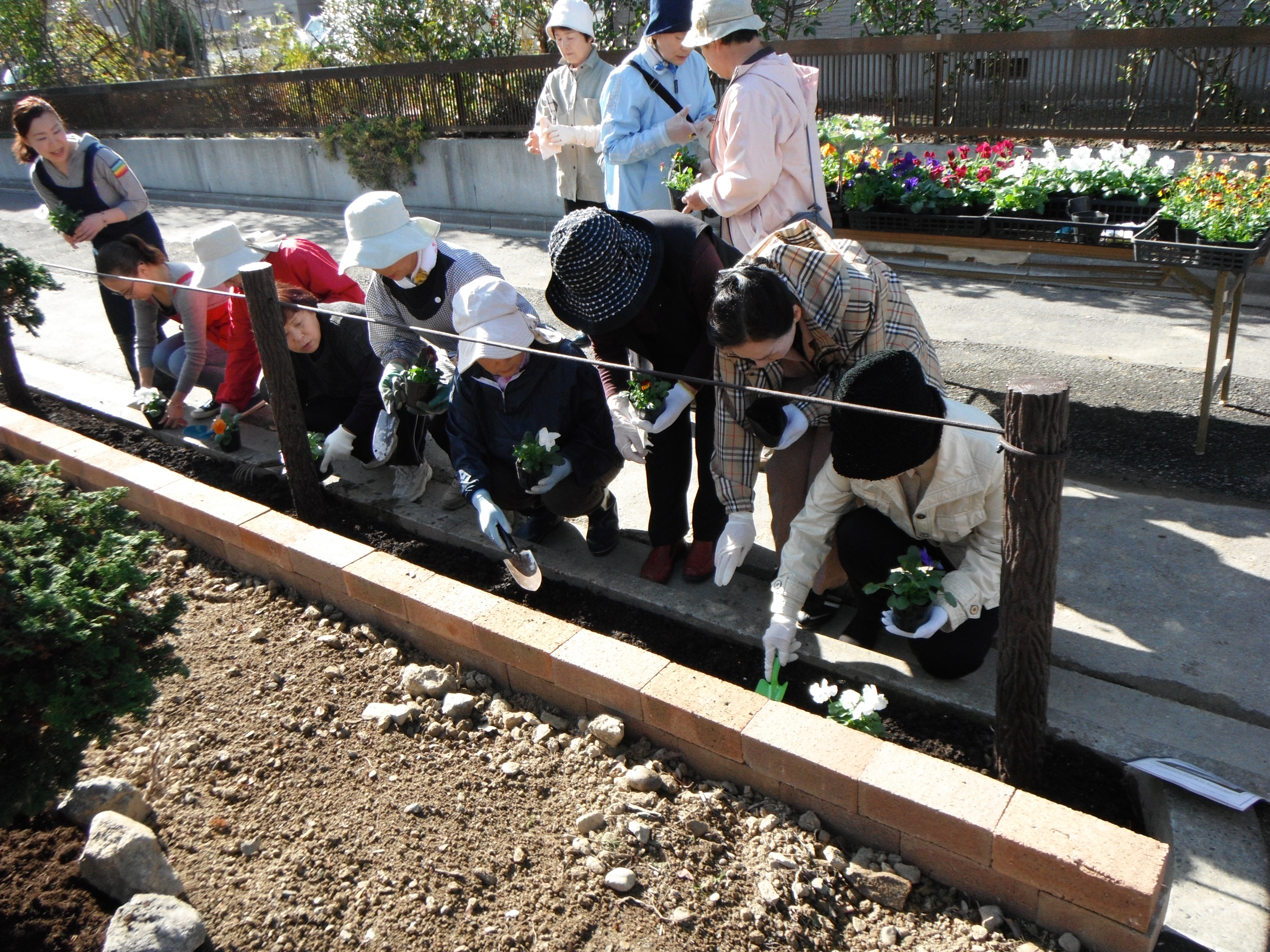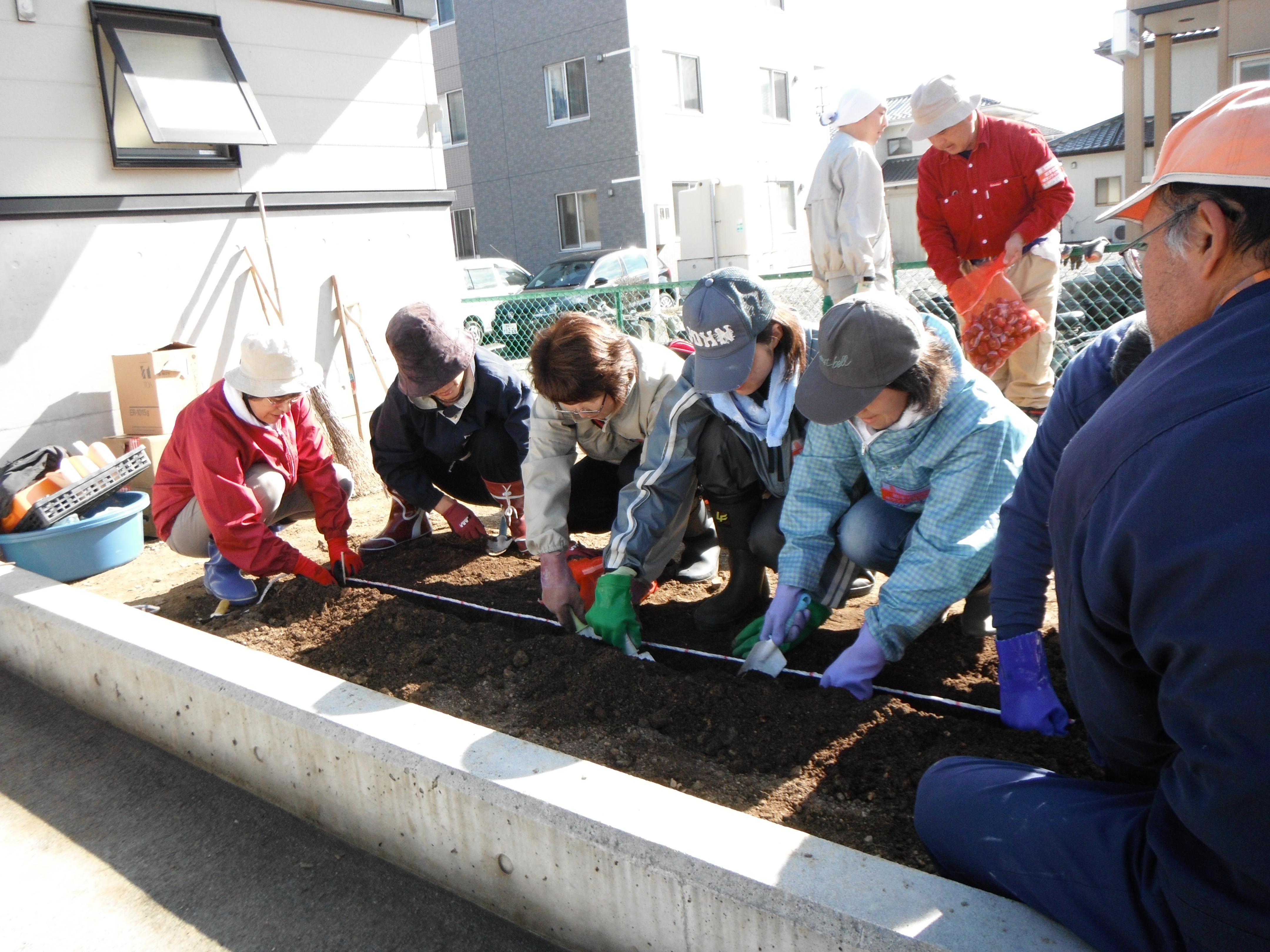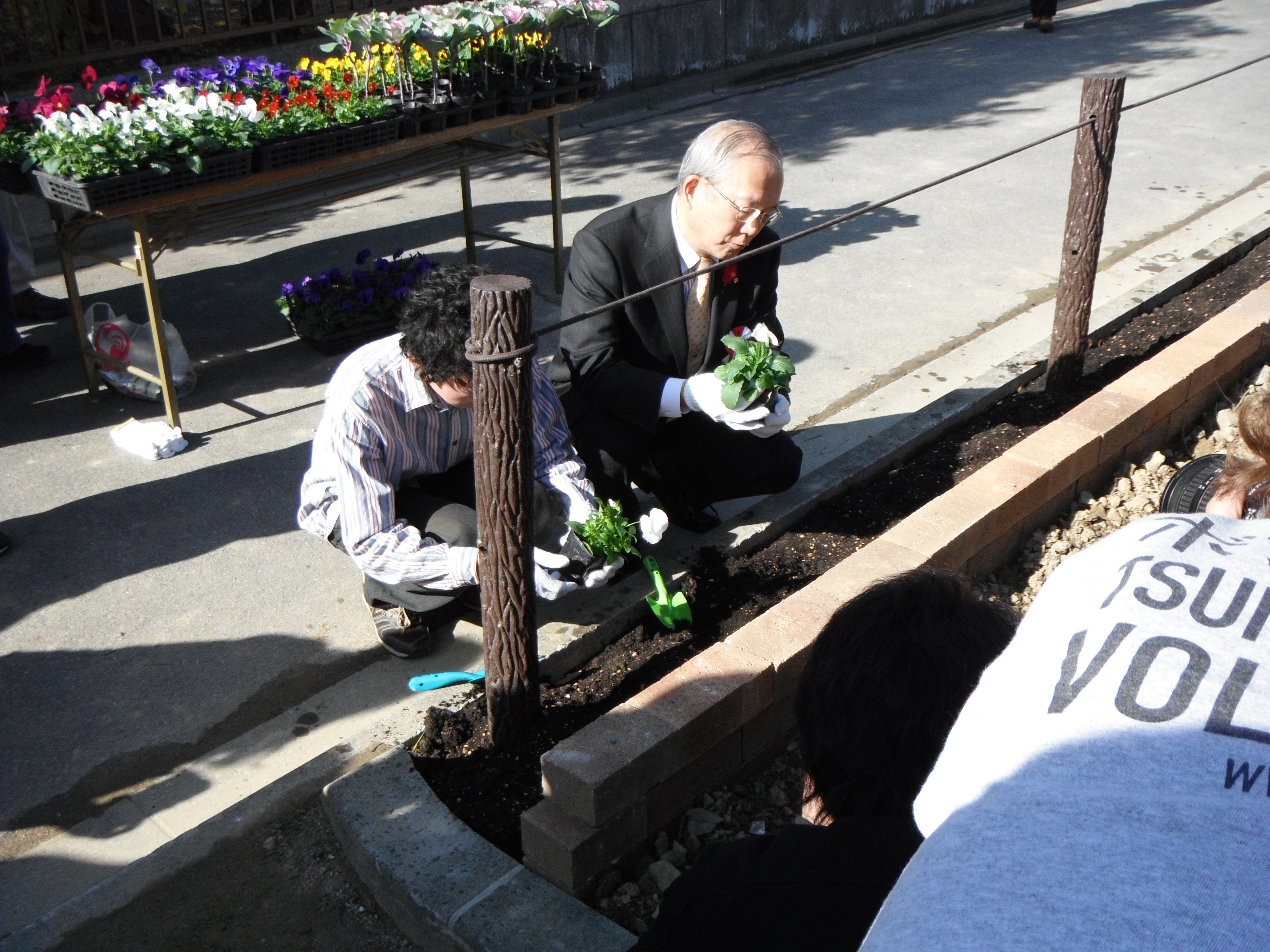 「メモリアルガーデン」には花を、「復興ガーデン」には兵庫県宝塚市から贈られたチューリップの球根をみんなで植え込みました。