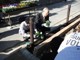 ク リス・ザネラ氏の「この公園に花を植えましょう。そしてその植えた花を見に来たときには、震災で亡くなられた人のことを思い出してください。」というあい さつが終わり、テープカット、記念写真撮影の後、公園を囲むように作られた「メモリアルガーデン」と「復興ガーデン」にみんなで集合しました。