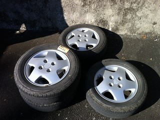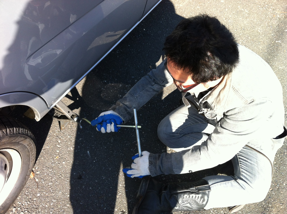 アメフラシです。仕事で使わせていただいている車を、本日冬タイヤにカスタマイズ!