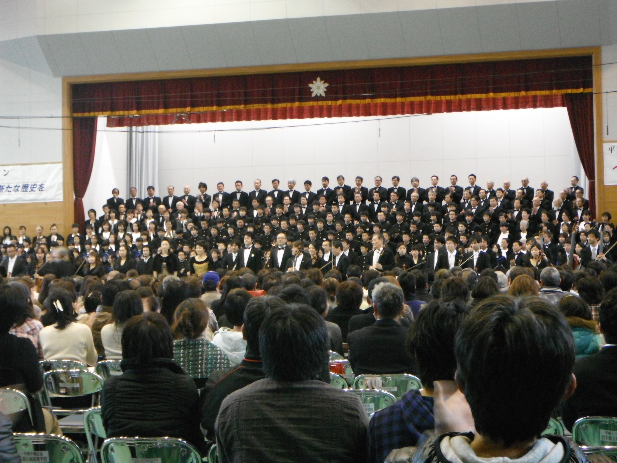 2011年12月11日(日)午後1時30分~釜石高校第一体育館にてかまいしの第九が開催され、釜石では東中学校の全校生徒の皆さんも参加されました。