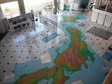 1階フロアには、床に日本地図が描かれ、赤・青のメガネをかけると立体として見ることができ、地図記号クイズや目測のゲームなど子供が体験しながら地図の学習ができる展示がある。