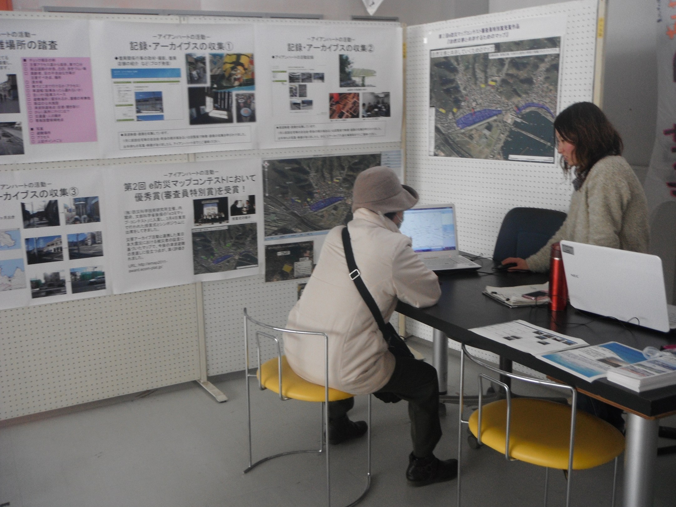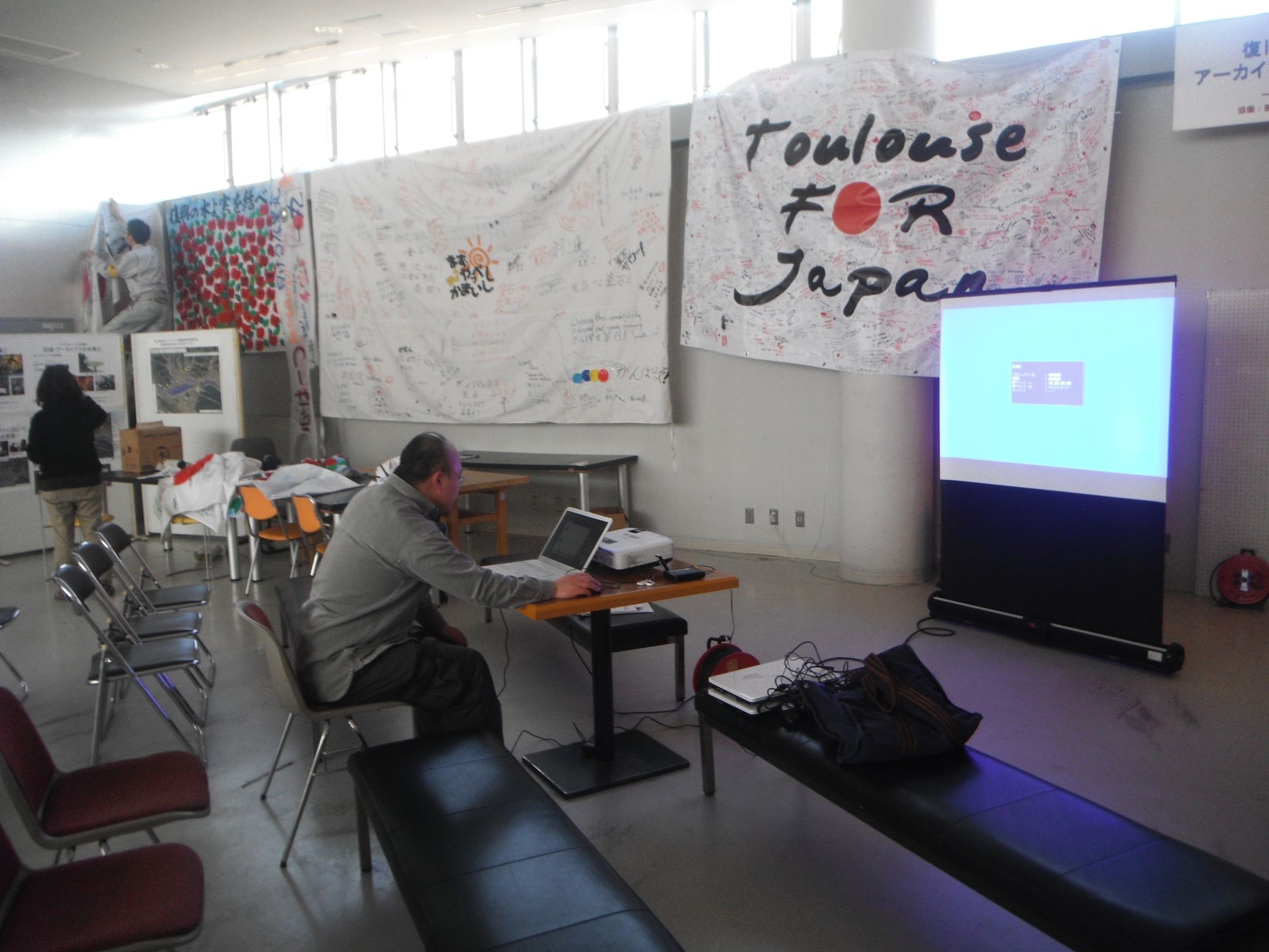2012年3月19日 から3月30日までシープラザ2Fで開催されるアーカイブス成果展示会の準備の様子です。