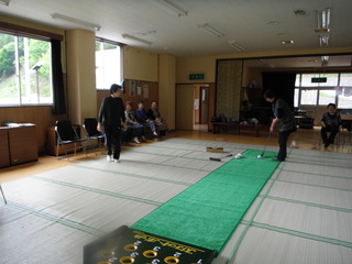 健康体操のインストラクターの方とスカッとボールという、得点を競うゲームをしていました。
