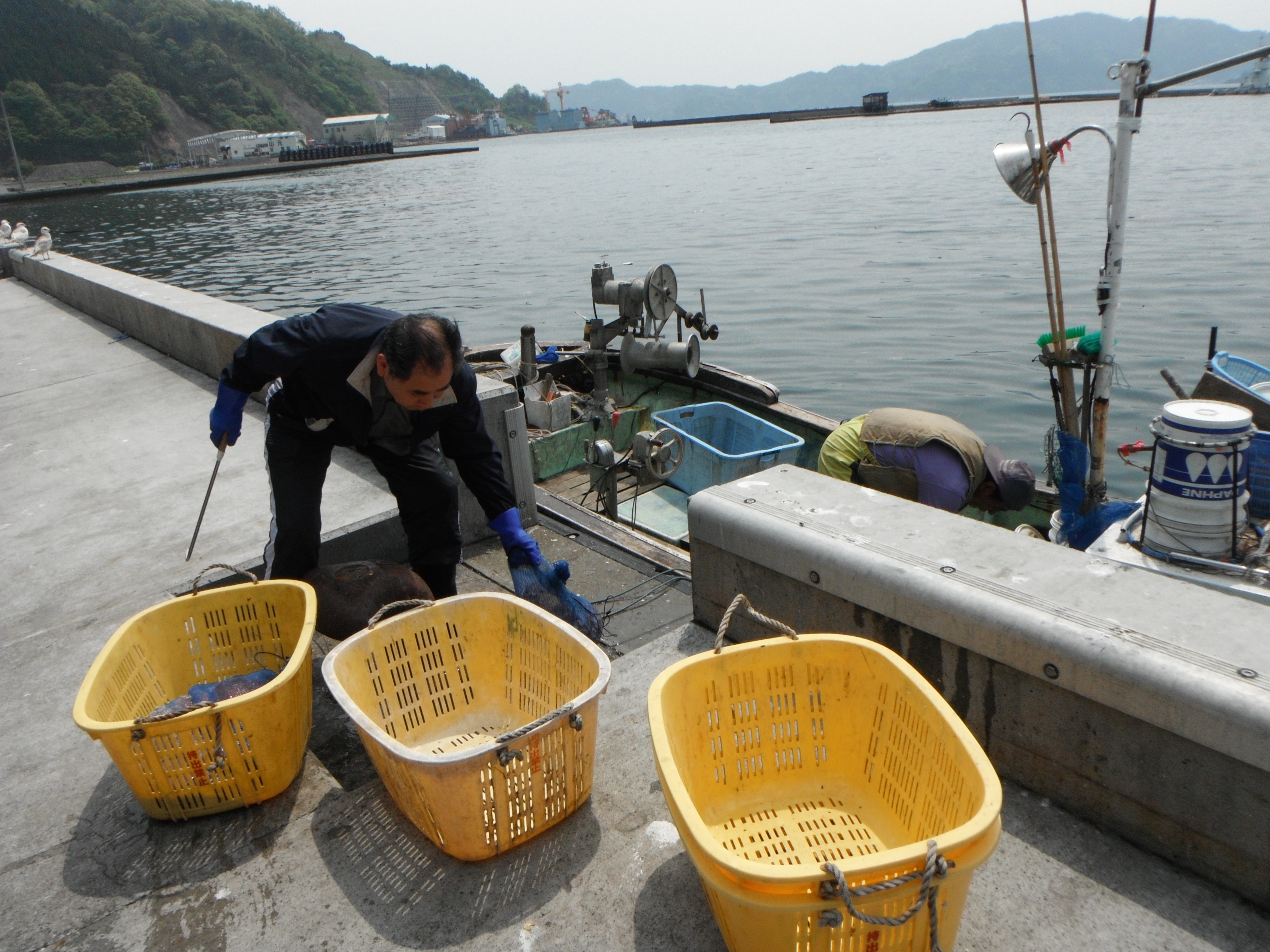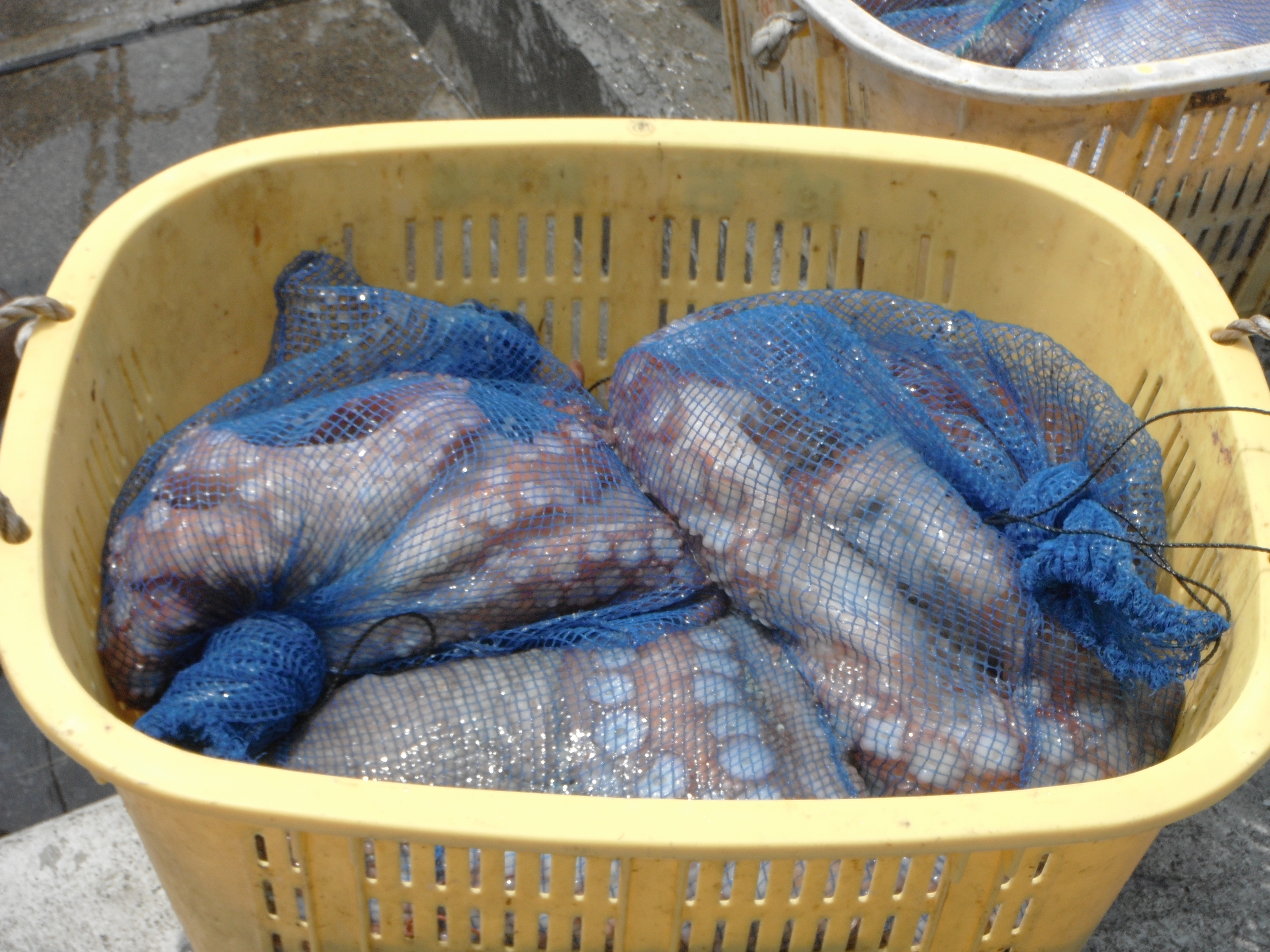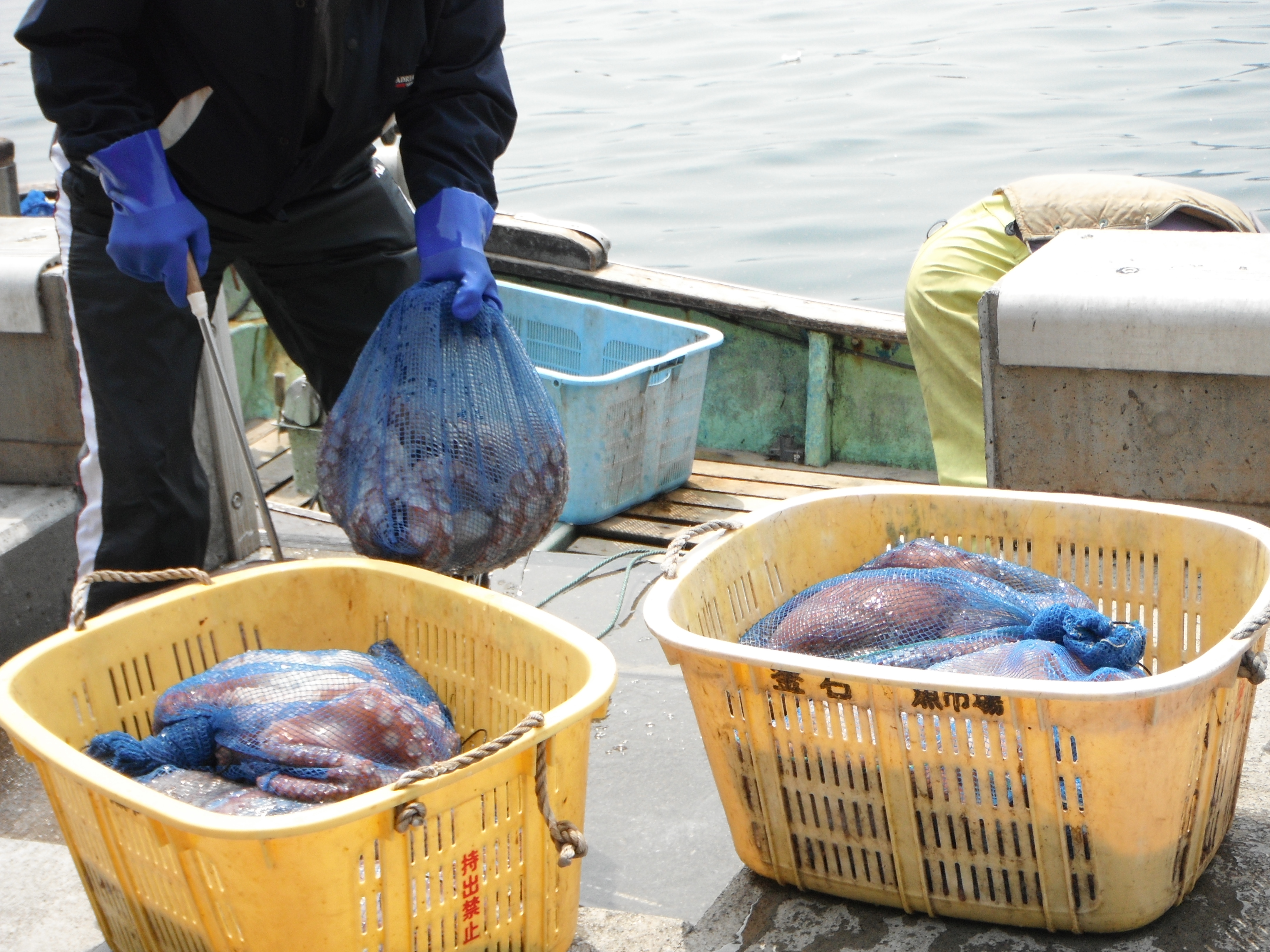 午前10時過ぎに行ったら、タコを水揚げしていました。