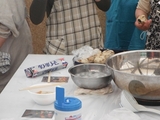 会場内の調理場では県北部(久慈地域)で親しまれている、まめぶ汁の団子の準備を平田町内の女性部(おかあさんたち)朝から集まりみなさんで、団子の具(クルミ、黒糖)を詰める作業をしていました。