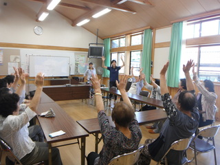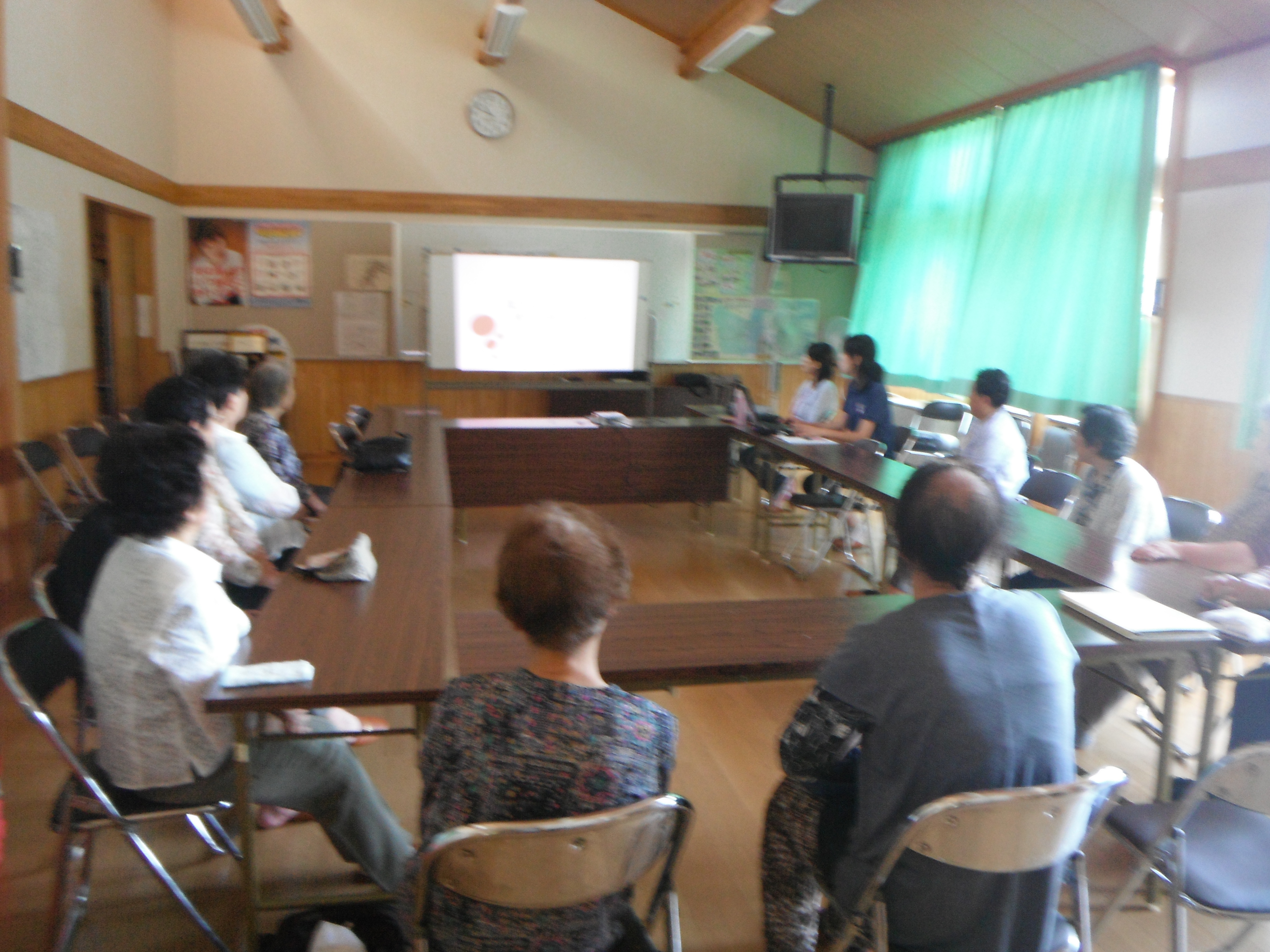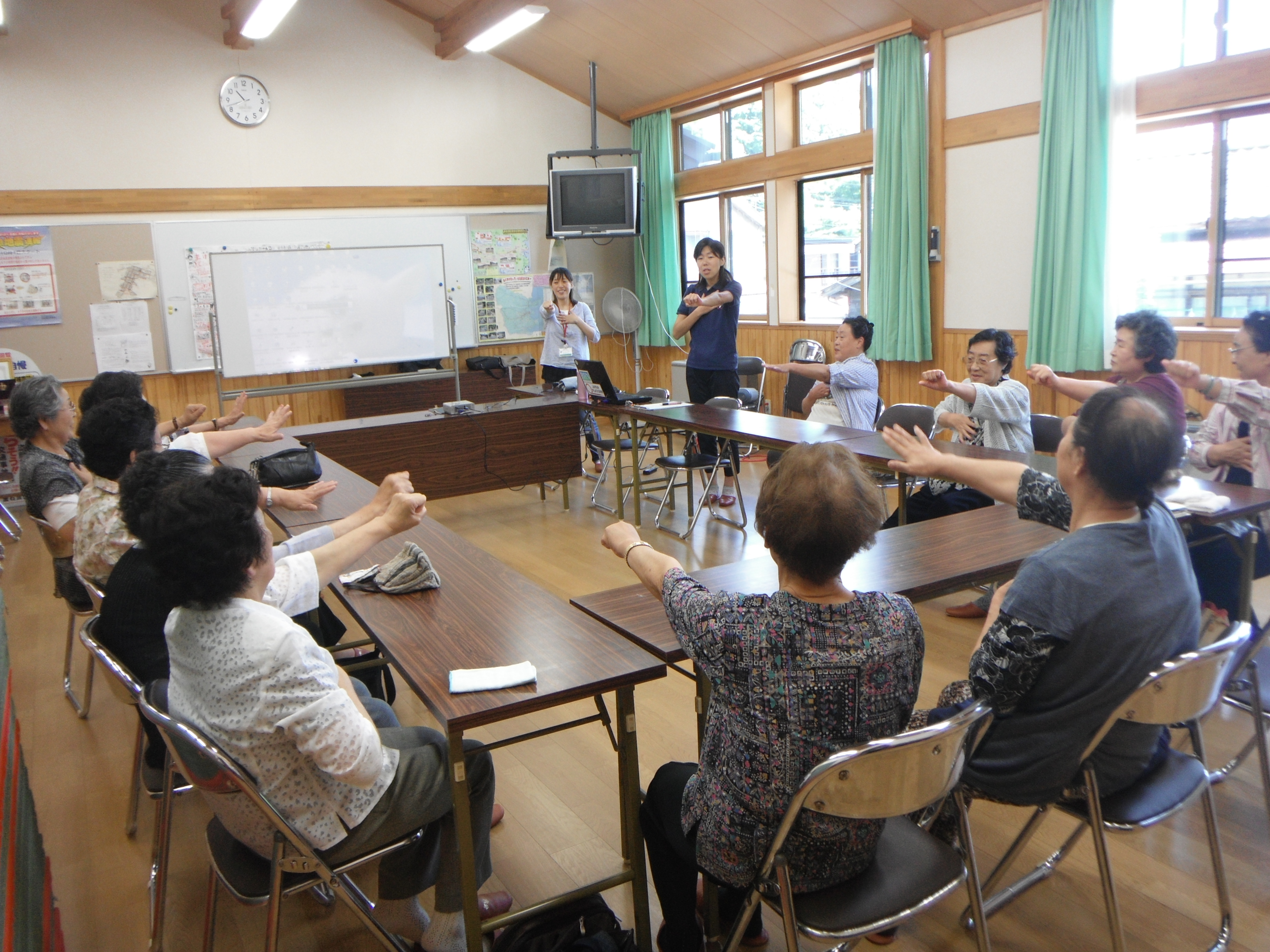 内容は、市の保健師の方を2名を招いて体操や血圧測定等、健康に関しての話を伺う会でした。
