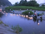鈴子広場北側、甲子川では夕方6時30分から精霊流しが行われ1000個の灯篭が静かに流れていました。
