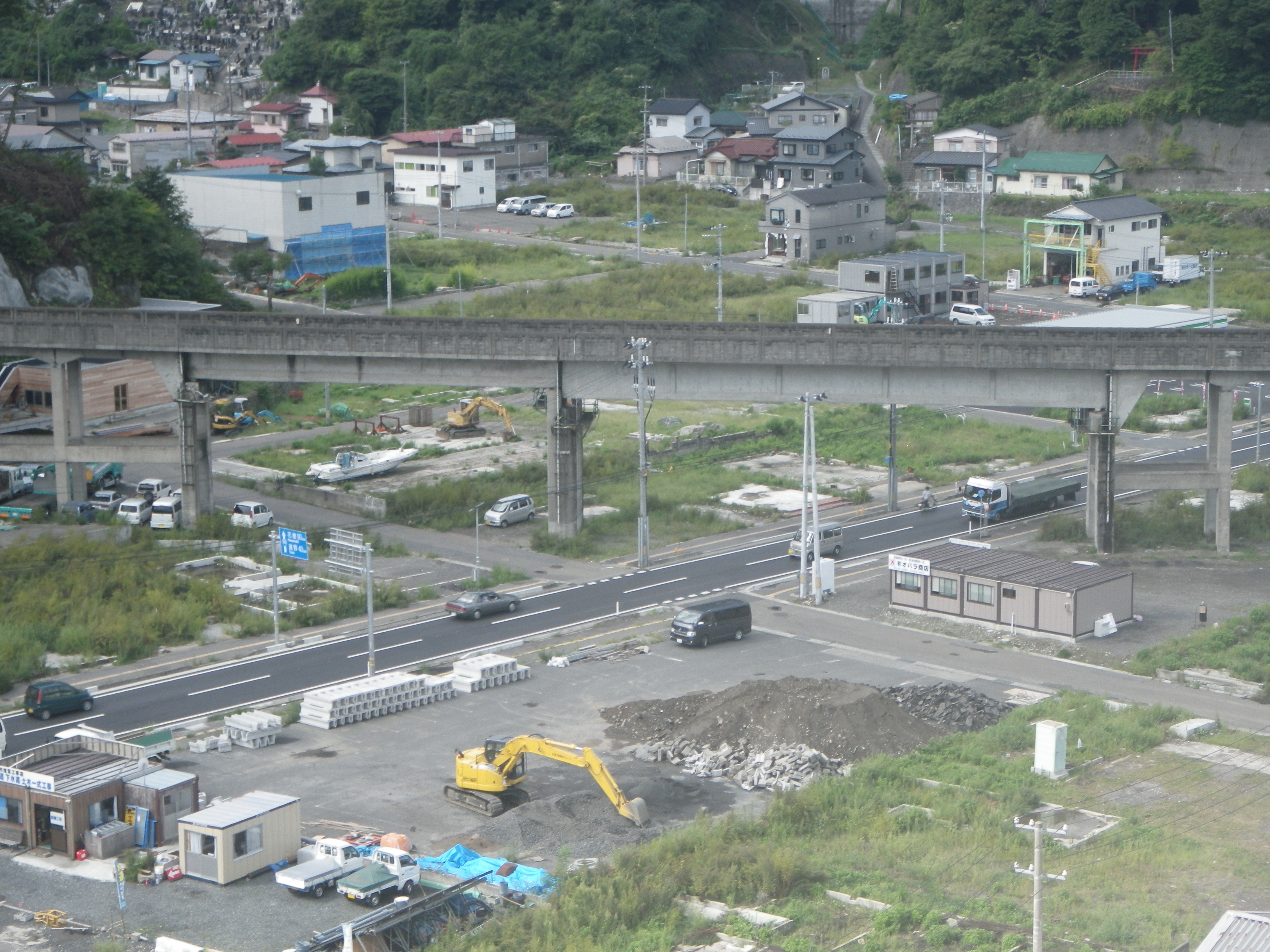 大渡川下流と三陸鉄道高架橋(震災直後 釜石駅まで行くのに高架の上を歩きました。)