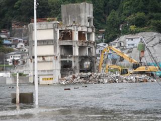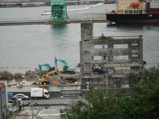 魚市場の所の建物はほとんど解体されて、ここだけ現在作業中でした。