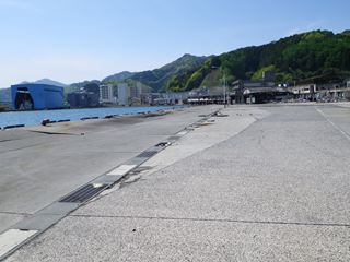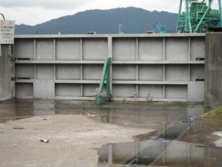 水門の中は波がひどく入れず。