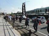 ▼東前の道路には、御神輿さまを待つ、神楽や虎舞が待機しています。