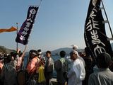 お神輿の乗る船に向かって手を振り、いつまでも見送ります。
