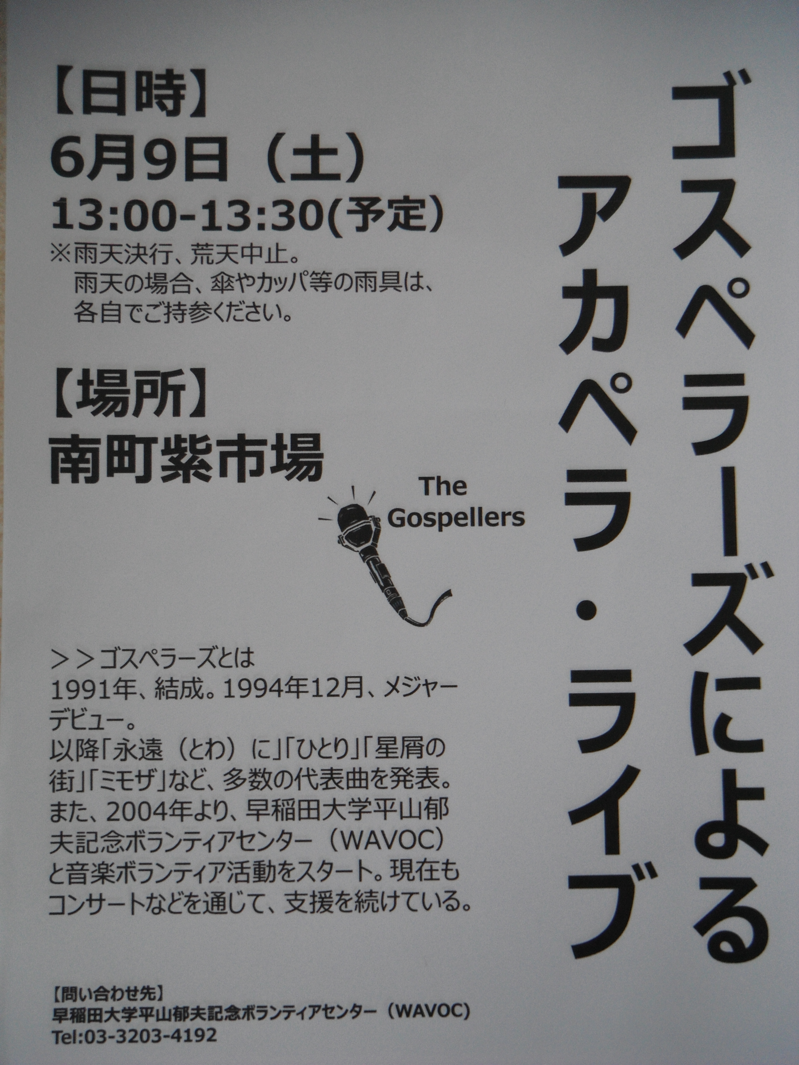 6月9日ゴスペラーズによるアカペラ・ライブ 開催予定